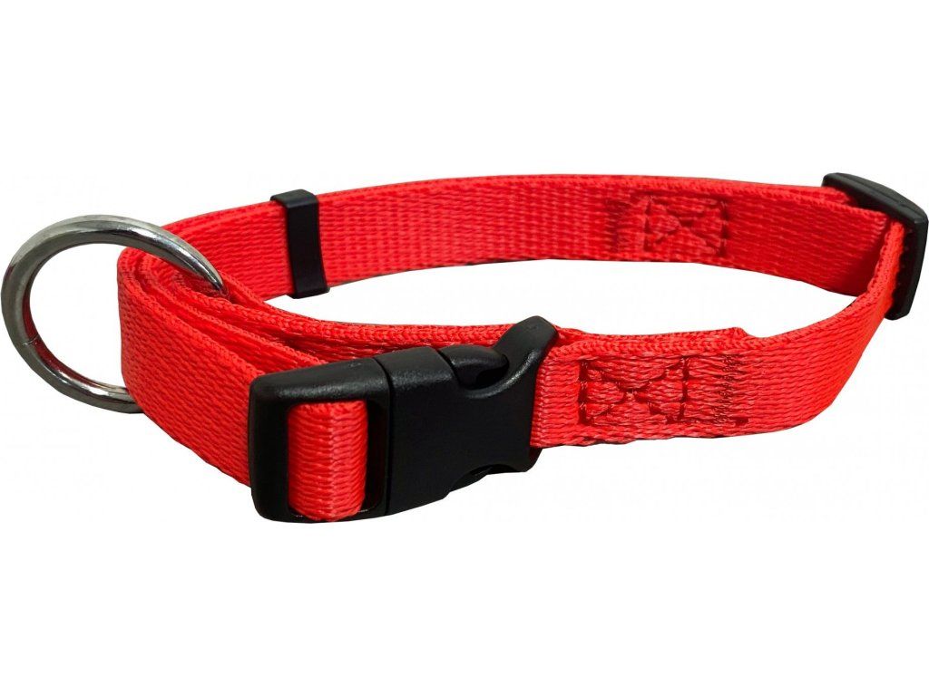 Obojky jsou vyrobeny z velmi měkkého a příjemného nylonového popruhu. Disponují zapínáním na plastovou přezku a mají jednoduše nastavitelný obvod. Součástí je svařovaný kovový kroužek pro připnutí vodítka. Obojky jsou vhodné pro střední i velká plemena. Před zapnutím provlékněte přezku kroužkem. Pokud ji neprovléknete, dochází tak ke kroucení obojku. Rozměry: 1,5 cm x 30-50 cm. Barva: červená.