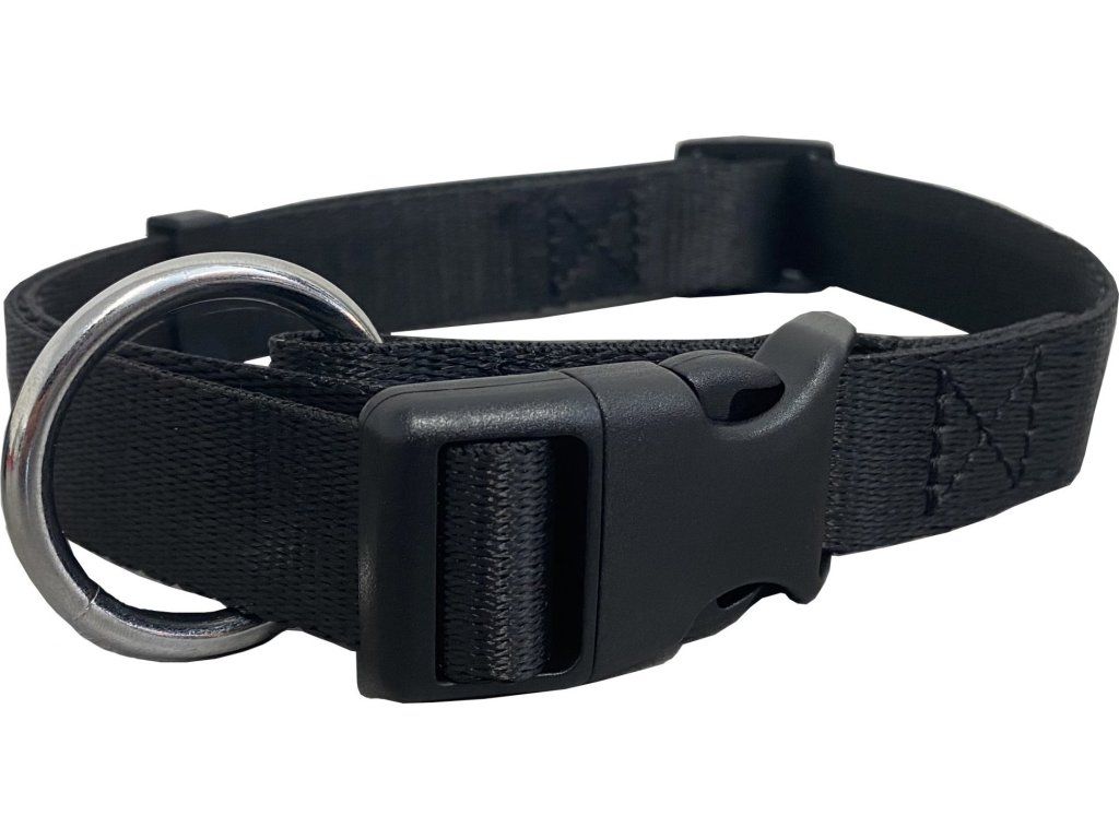 Obojky jsou vyrobeny z velmi měkkého a příjemného nylonového popruhu. Disponují zapínáním na plastovou přezku a mají jednoduše nastavitelný obvod. Součástí je svařovaný kovový kroužek pro připnutí vodítka. Obojky jsou vhodné pro střední i velká plemena. Před zapnutím provlékněte přezku kroužkem. Pokud ji neprovléknete, dochází tak ke kroucení obojku. Rozměry: 2,5 cm x 4-66 cm. Barva: černá.