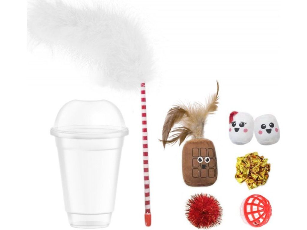 Sada 7 různých hraček pro kočky ve vánočním kelímku.
