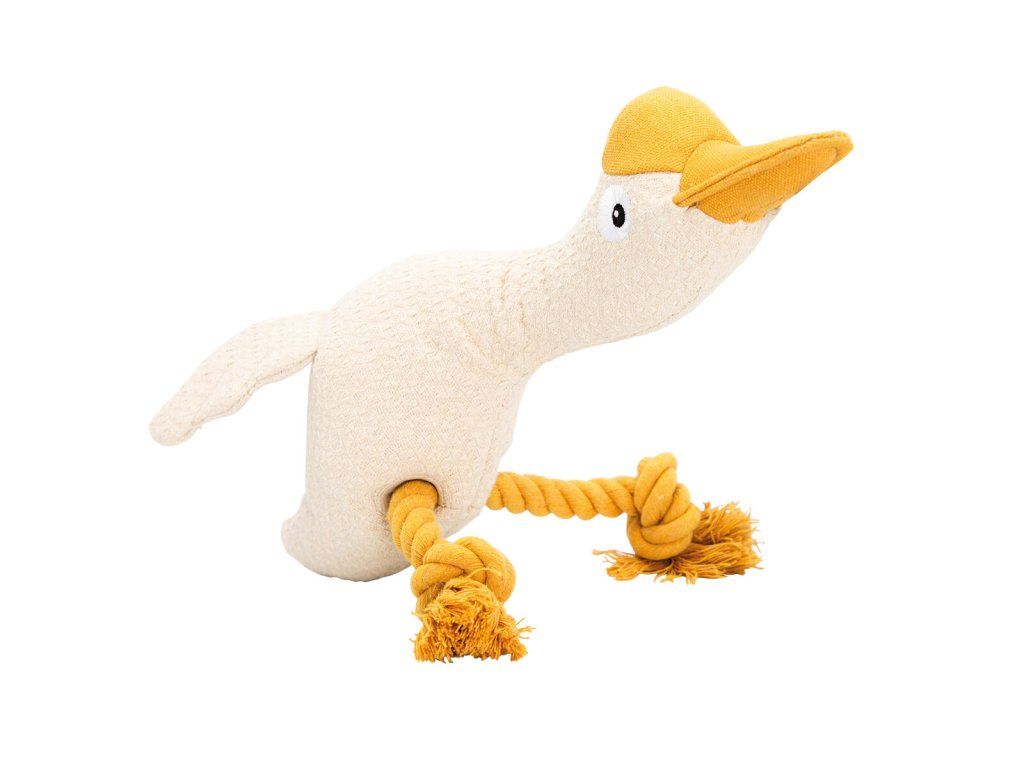 Husa 29 cm, látková robustní hračka s bavlněnými uzly, krémová/hořčicová, HipHop Dog