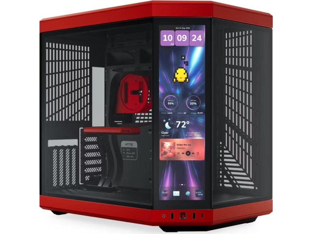 PC skříň HYTE Y70 Touch Infinite Black Cherry dá zapomenou na všechny fádní počítače, které jste kdy v životě viděli. Připravte se na zcela neokoukaný design, který vyráží dech a z počítače udělá vizuální klenot. Je elegantní, futuristická a opatřena dotykovým displejem. Současně je navržena pro výkonné a moderní PC systémy, čemuž odpovídá vnitřní uspořádání, podpora špičkových komponent a široká kompatibilita. Dvoukomorová PC skříň HYTE Y70 Black Cherry na první pohled zaujme dotykovým IPS displejem, na kterém přehledně zobrazíte systémové informace, animace, nebo třeba hudební přehrávač.