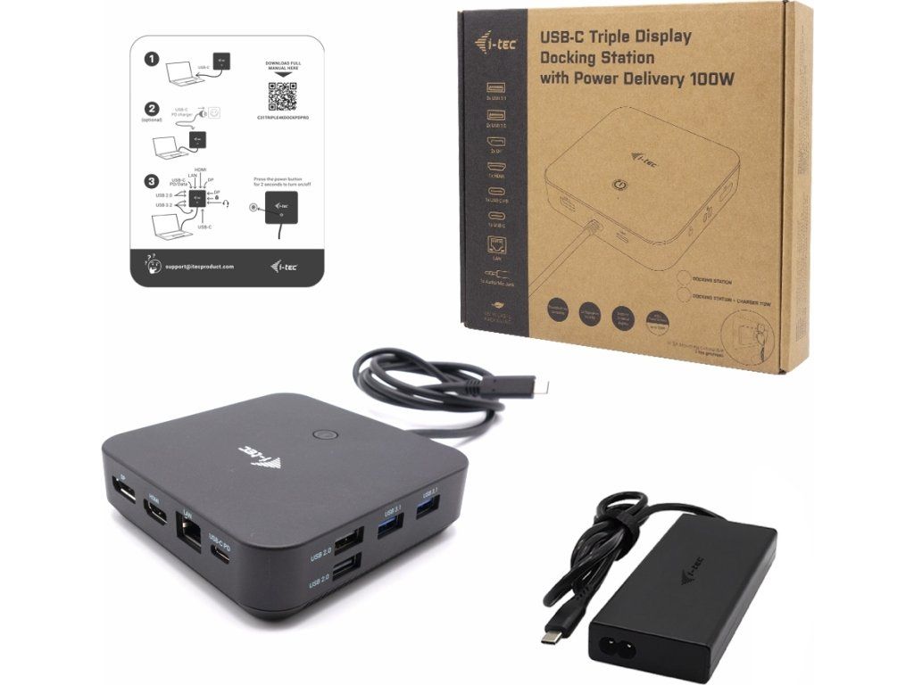 i-tec dokovací stanice/ 2x USB-C/ 2x USB 2.0/ 3x USB 3.0/ HDMI/ 2x DP/ LAN/ Power Delivery 100 W + univ. nabíječka 100 W