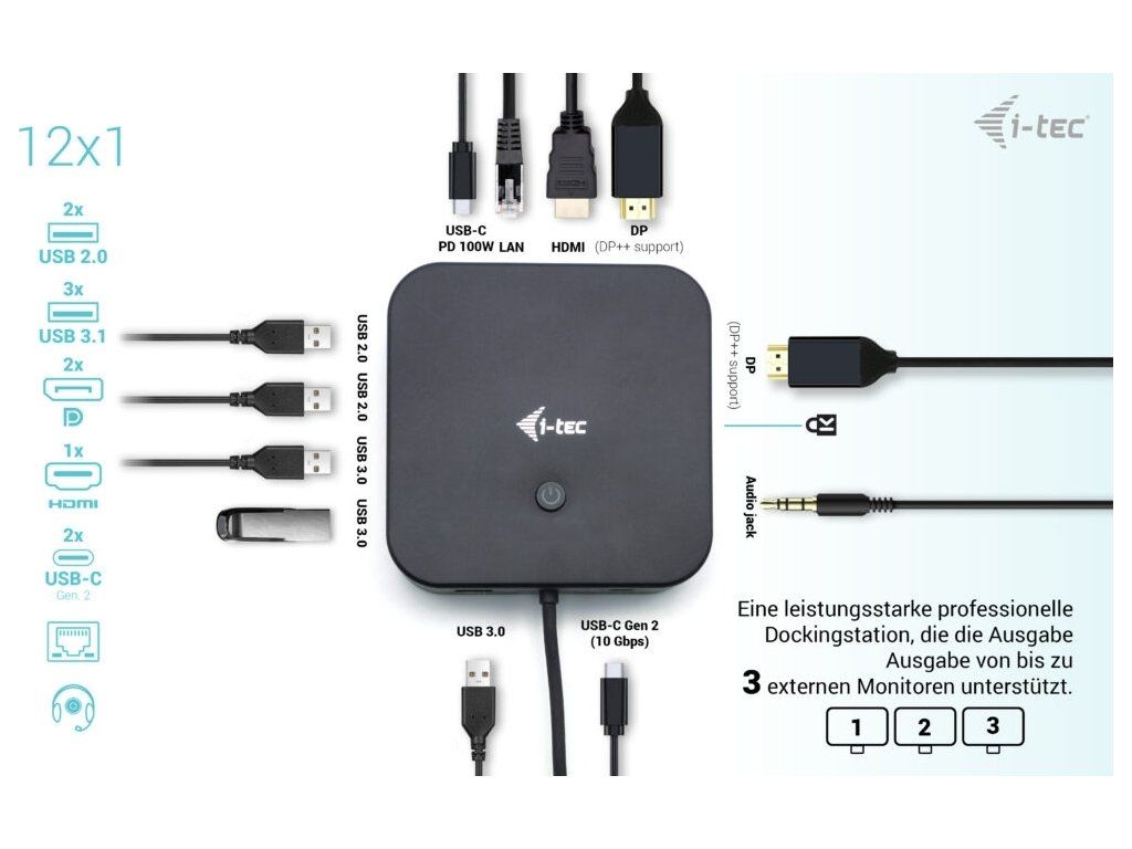 i-tec dokovací stanice/ 2x USB-C/ 2x USB 2.0/ 3x USB 3.0/ HDMI/ 2x DP/ LAN/ Power Delivery 100 W