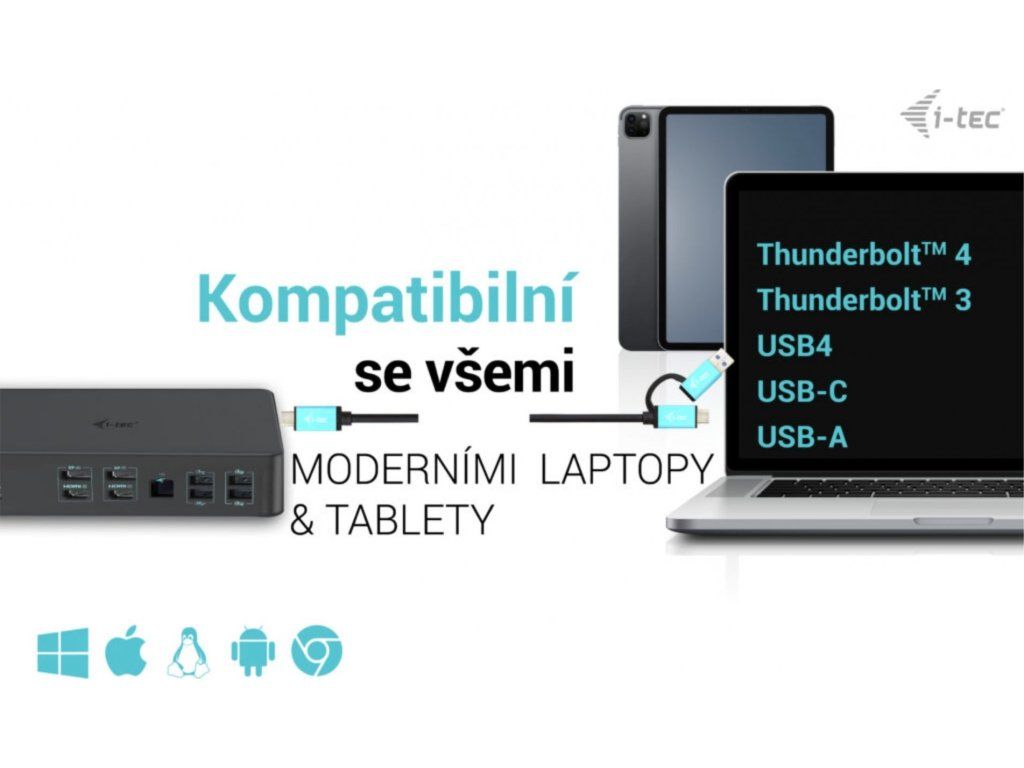 • Profesionální univerzální dokovací stanice, kompatibilní s notebooky a tablety s rozhraním USB-C, USB-A a Thunderbolt.