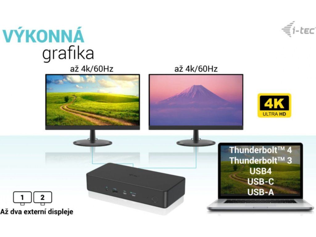 • Připojení 2 externích monitorů s rozlišením až 4K