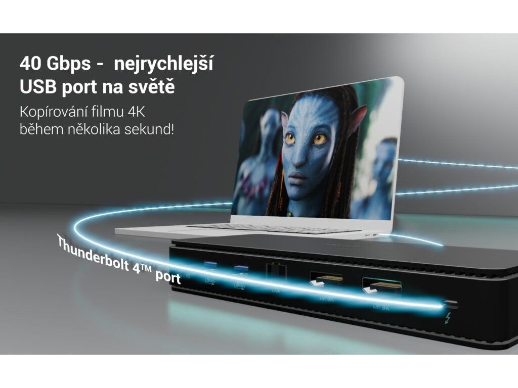 - Porty 2× Thunderbolt 4 - 1× pro připojení k notebooku a 1× pro přenos videa nebo dat rychlostí až 40 Gb/s