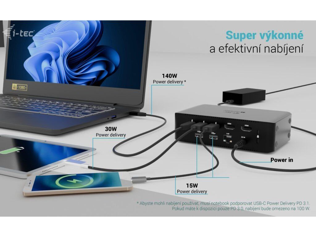 Nabíjení notebooku: až 140 W (PD 3.1) / 100 W (PD 3.0)