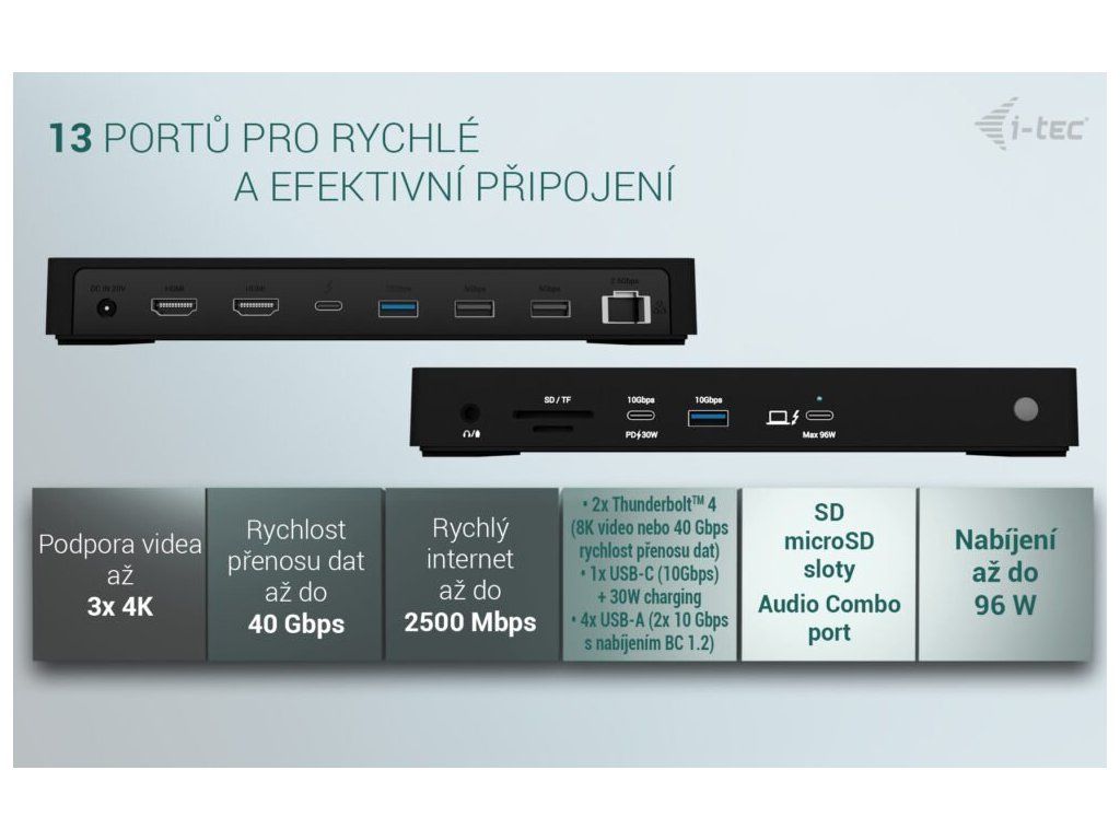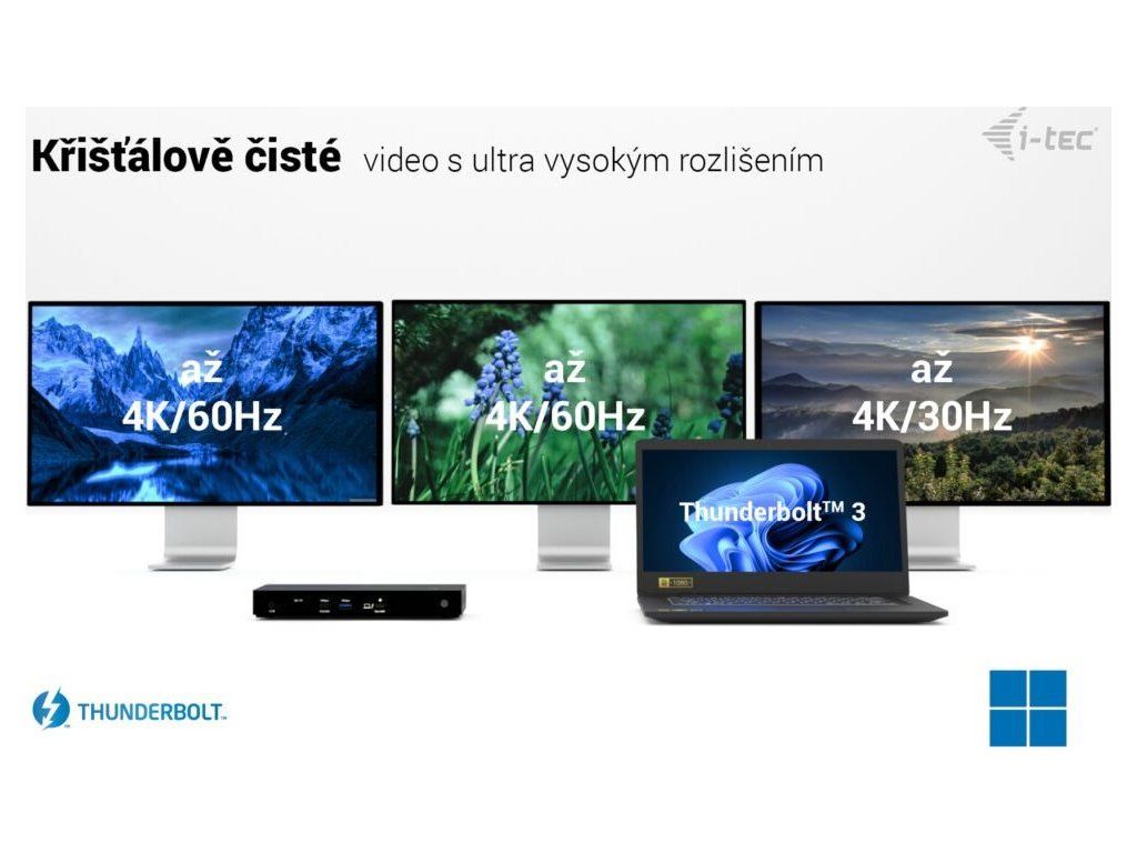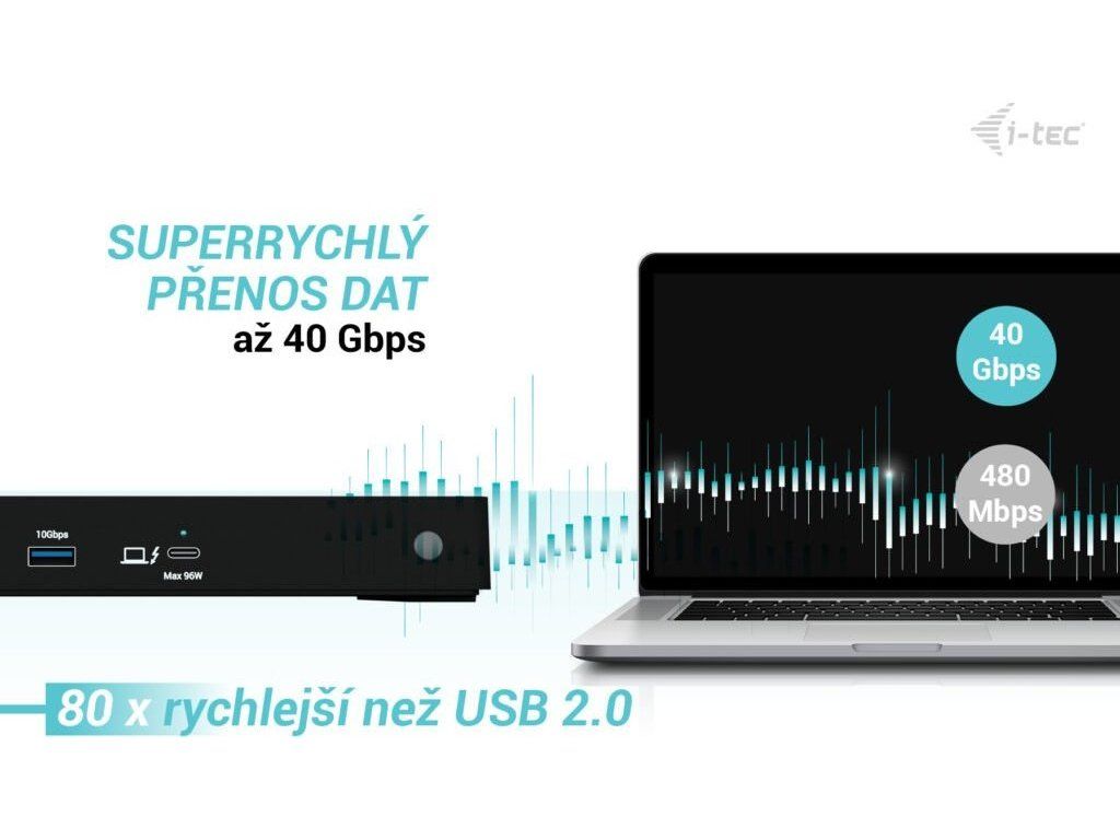 I-TEC Thunderbolt4 Triple Display Docking Station představuje výkonnou dokovací stanici, která udělá z vašeho stolu moderní digitální pracoviště. Umožňuje připojení až trojice 4K monitorů přes a tím také razantní rozšíření pracovní plochy. Rozhraní Thunderbolt 4 se vyznačuje vysokou rychlostí, takže vaše pracovní povinnosti budou lítat.