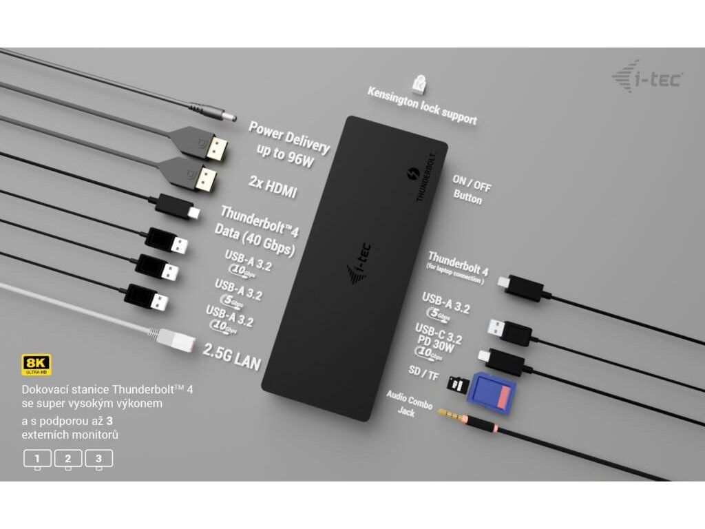 i-tec dokovací stanice Thunderbolt4 3x Display Docking Station, Power Delivery 96W
