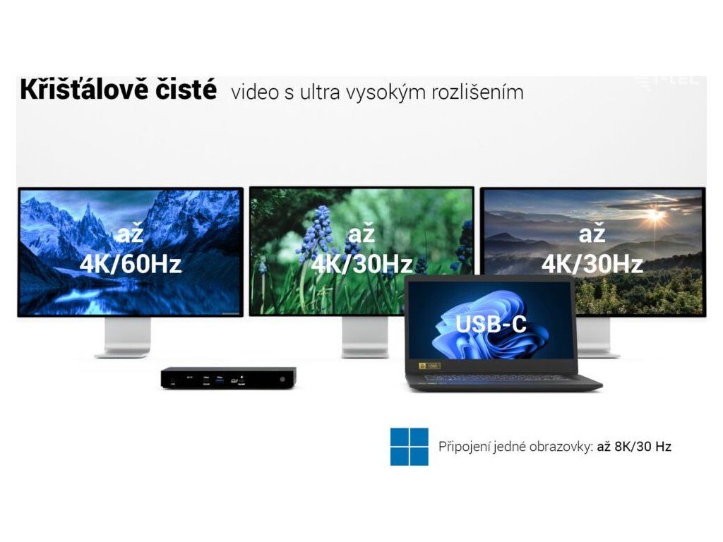 Ultra výkonná dokovací stanice s podporou rozlišení až 8K/60 Hz a přenosu dat rychlostí až 4 GB/s.