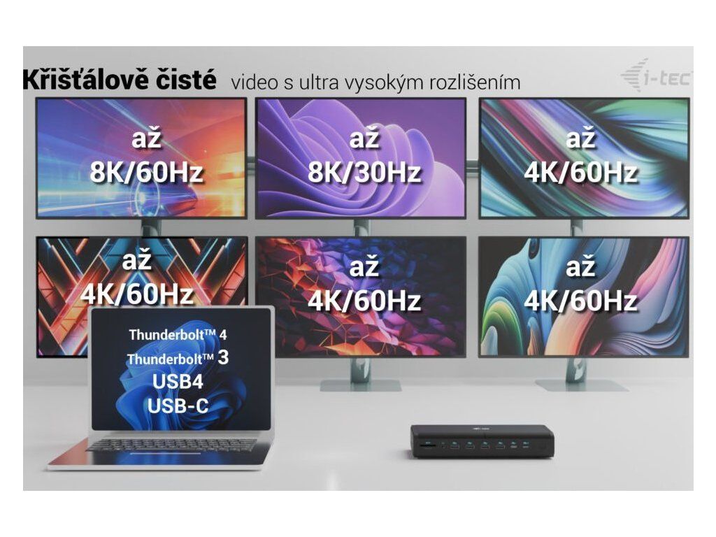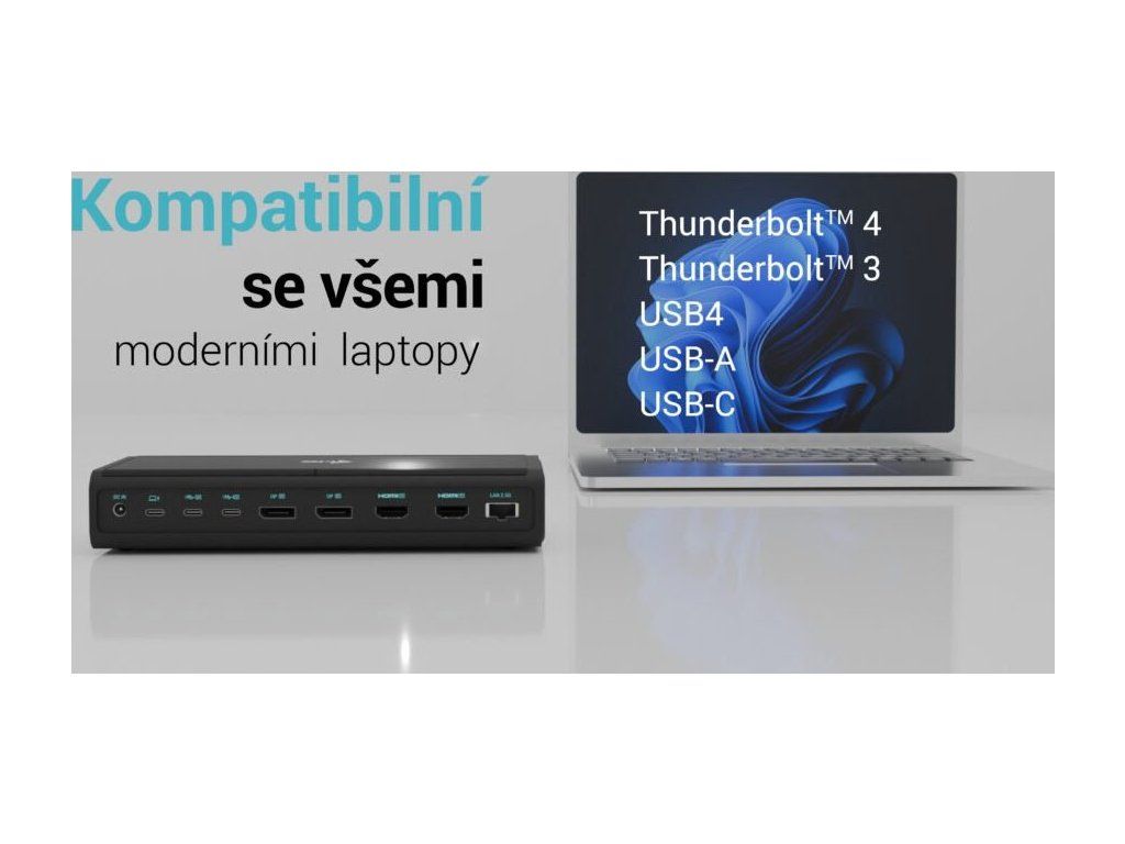 • Dokovací stanice je kompatibilní s téměř všemi současnými notebooky (připojení přes porty USB-A, USB-C, USB4 nebo Thunderbolt™ 3/4).