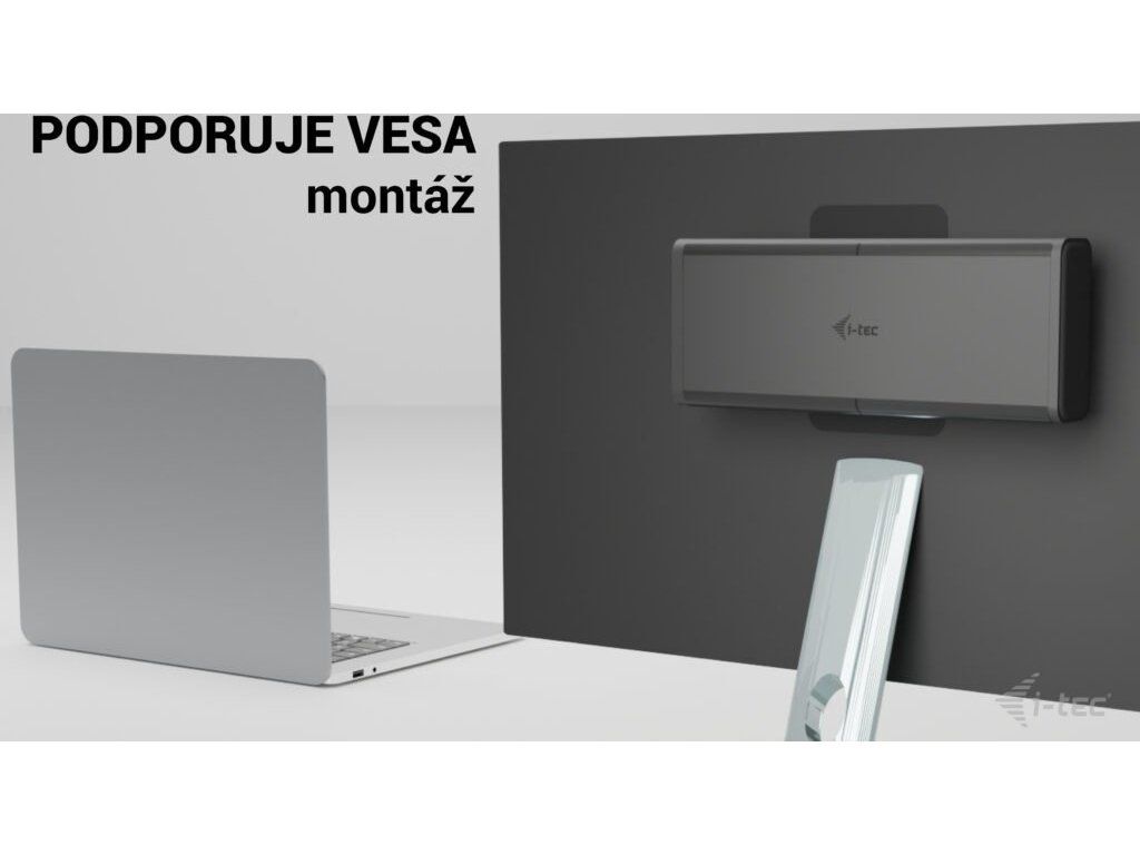 Dokovací stanici lze nainstalovat za monitor (pokud podporuje standardní držák VESA), pomocí i-tec VESA mount.