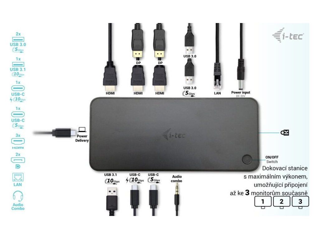 i-tec dokovací stanice USB 3.0 / USB-C / Thunderbolt/ 4K/ 2x DP/ 3x HDMI/ 2x USB-C/ 2x USB 3.0/ USB 3.1/ LAN/ PD 100W