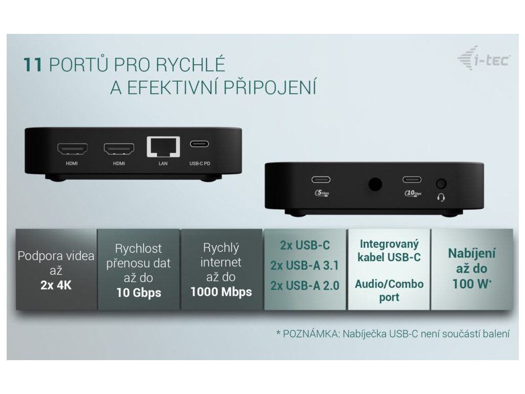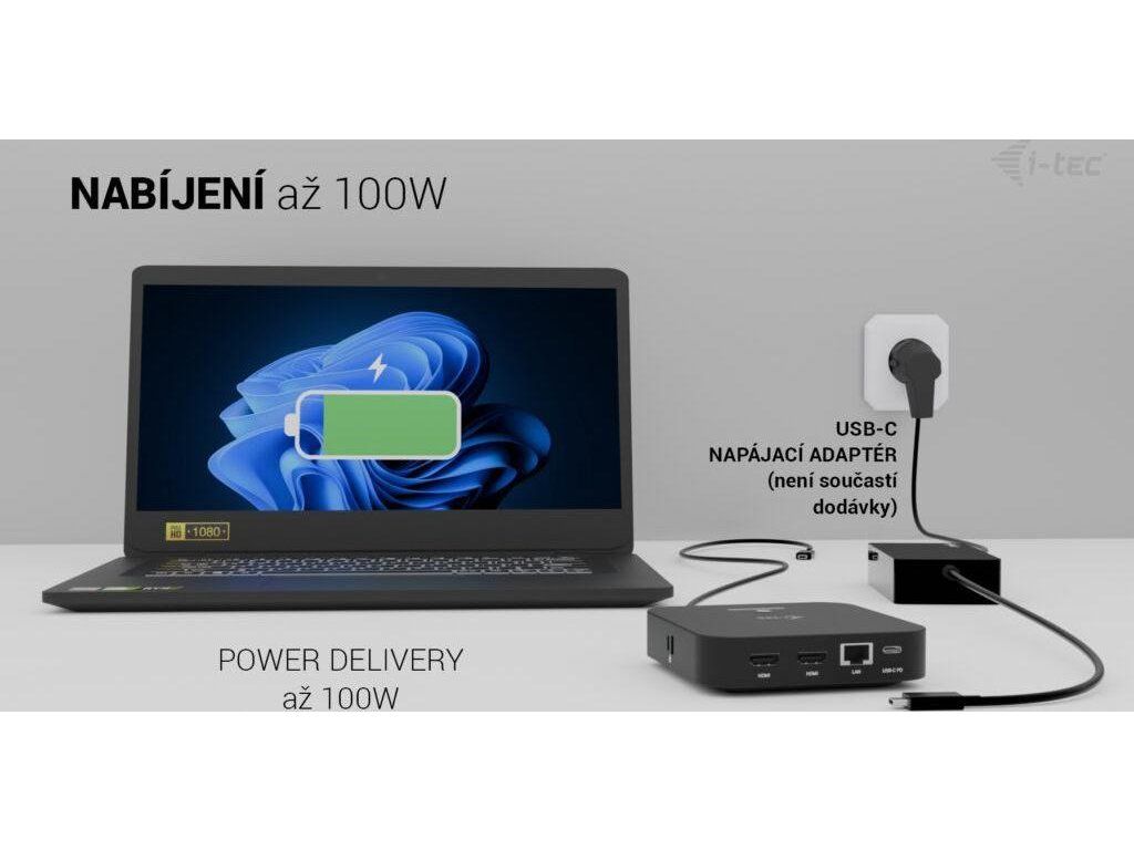 i-tec dokovací stanice USB-C Dual HDMI Docking Station with Power Delivery 100W + univerzální nabíječka 100W