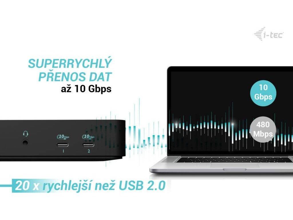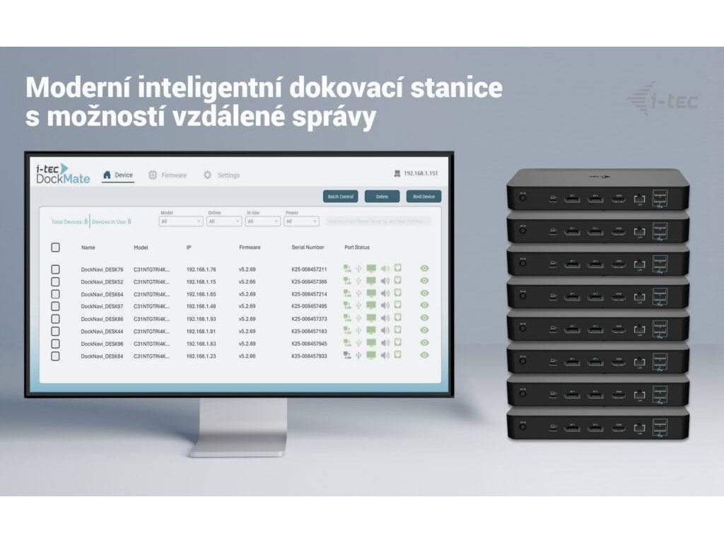 Dokovací stanice i-tec USB-C Intelligent, se kterou zavládne na vašem pracovišti řád a pořádek. Díky rozhraní USB-C je kompatibilní se všemi moderními notebooky vybavenými porty USB-C, USB4 nebo Thunderbolt 3/4/5. Umožní vám připojit až trojici externích monitorů, takže pracovní plocha dosáhne impozantních rozměrů. Jeden monitor na tabulky, druhý na aplikace a třetí na přehrávání multimédií nebo videohovory? Žádný problém. Inteligentní gigabitový Ethernet RJ-45 umožní rychlé a stabilní připojení k internetu, takže dění na internetu nebo síťové funkce máte pod kontrolou. Dále nabízí také podporu vzdálené správy, čili IT administrátoři spravovat dok i-tec USB-C Intelligent odkudkoliv.