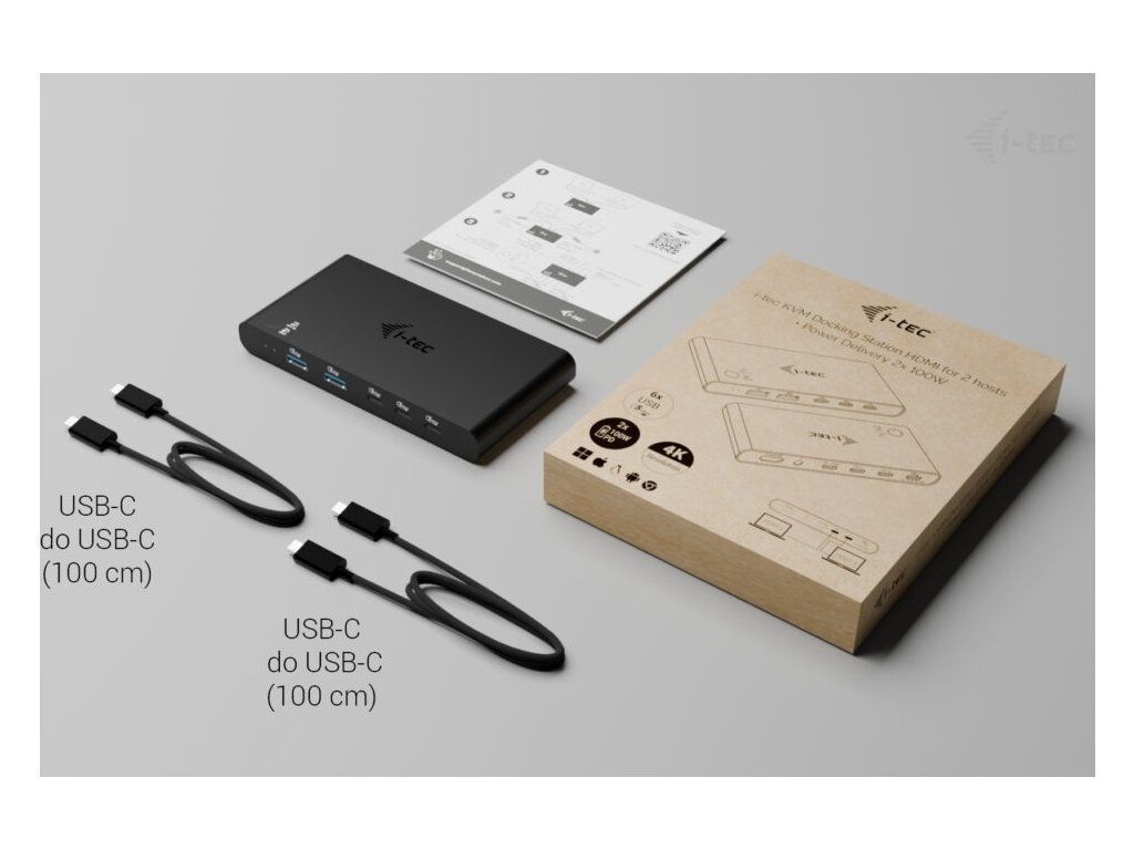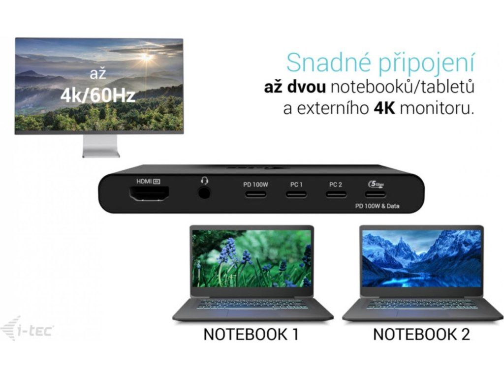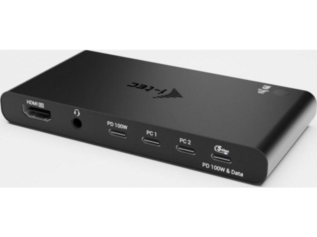 i-tec KVM dokovací stanice pro dva hostitele, 4K HDMI, 3x USB-C, 2x USB-A, Power Delivery 2x 100W