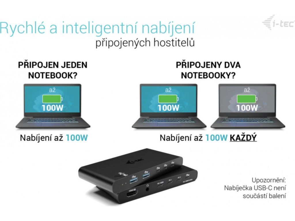- Dvojité Power Delivery až 2× 100 W pro současné nabíjení obou připojených zařízení