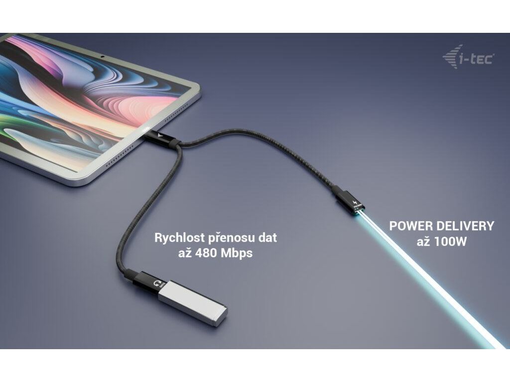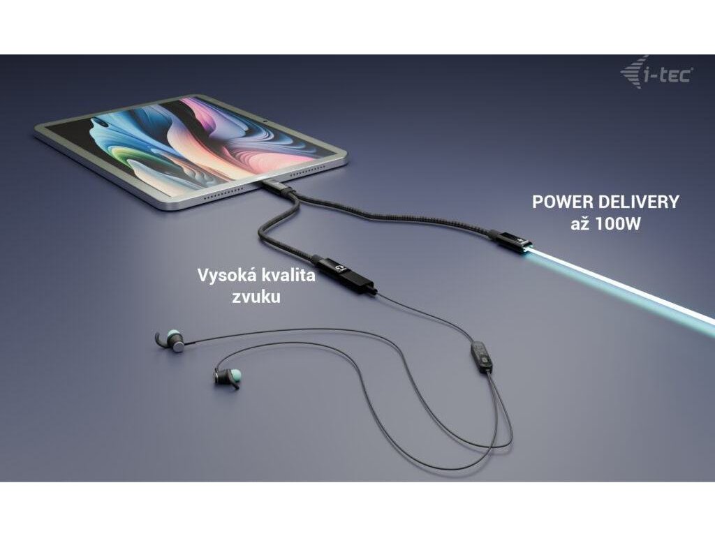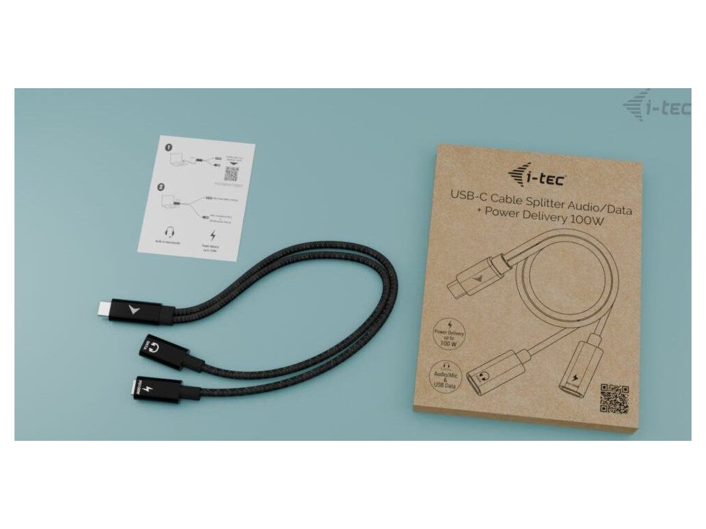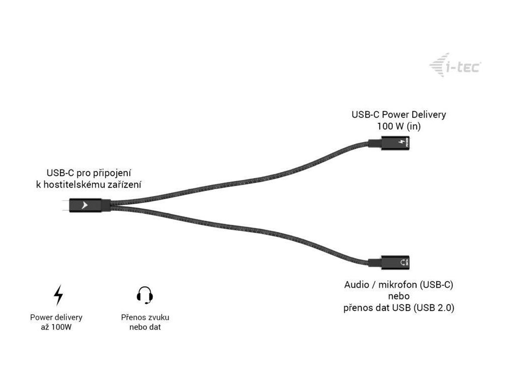 i-tec přípojný kabel USB-C Splitter Audio/Data, Power Delivery 100W