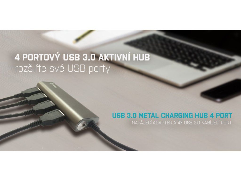 Tento HUB nabízí 4 USB 3.0 portů s funkcí Plug & Play a standardním USB nabíjením – HUB automaticky detekuje, jestli je připojeno zařízení pro USB nabíjení. Rozhraní USB 3.0 je důležité zejména pro datové přenosy z USB 3.0 paměťových karet a flash disků, kde se nejvíce využije jeho vysoká přenosová rychlost.