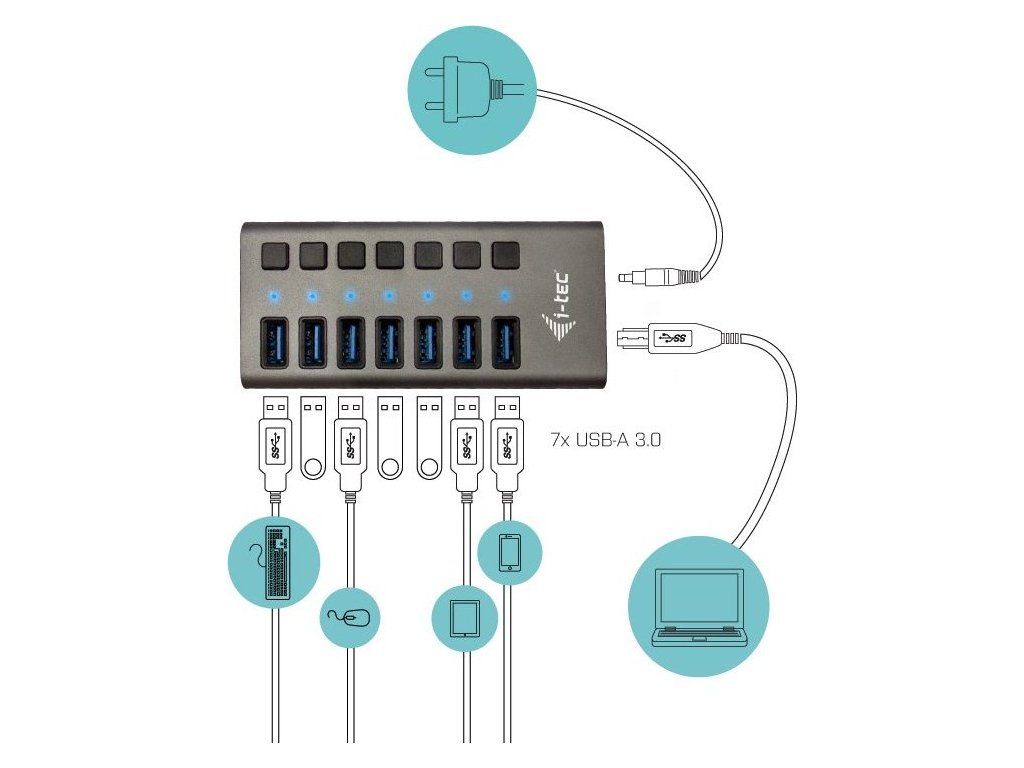 i-tec USB 3.0 nabíjecí HUB 7 Port + napájecí adaptér 36 W