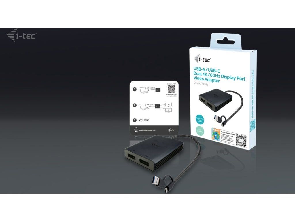 i-tec USB-A/USB-C Dual 4K DP video adaptér