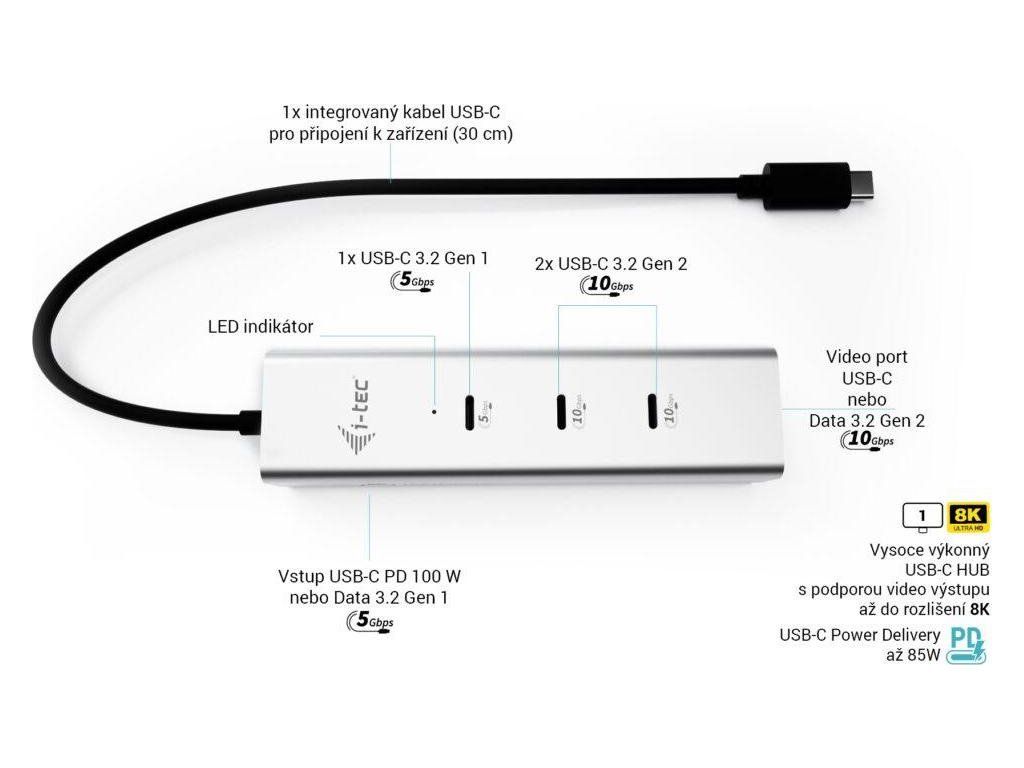 i-tec USB-C Charging Metal HUB 5port with USB-C video 8K, Power Delivery 85W