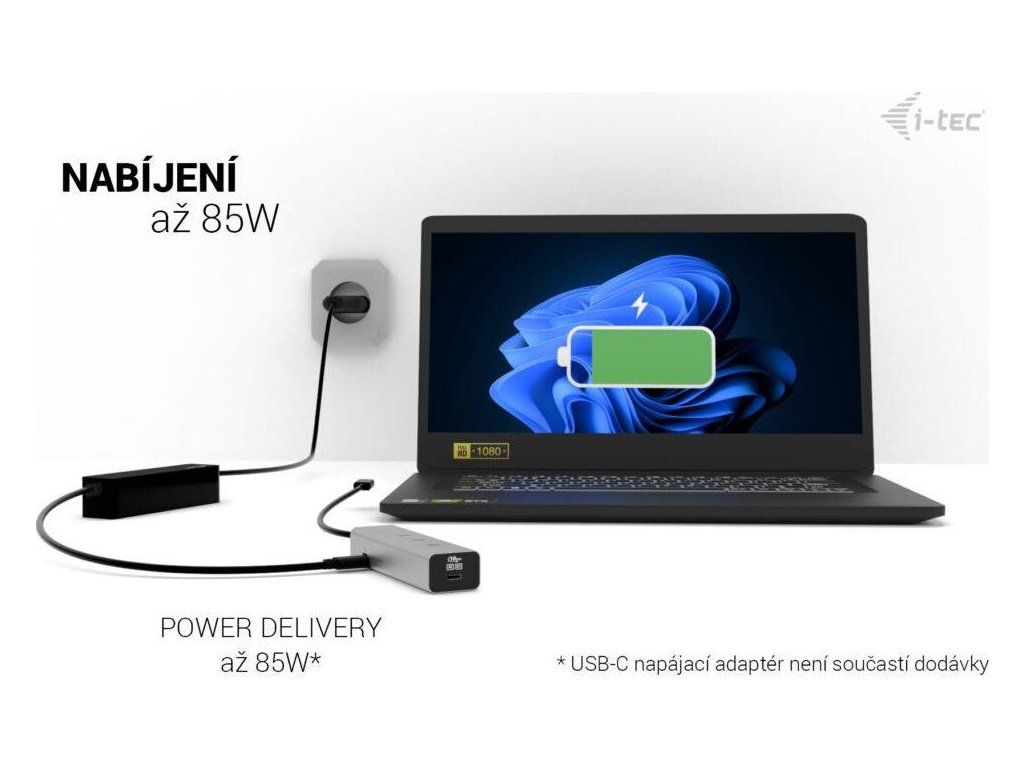 - Power Delivery až 85 W pro nabíjení připojeného zařízení