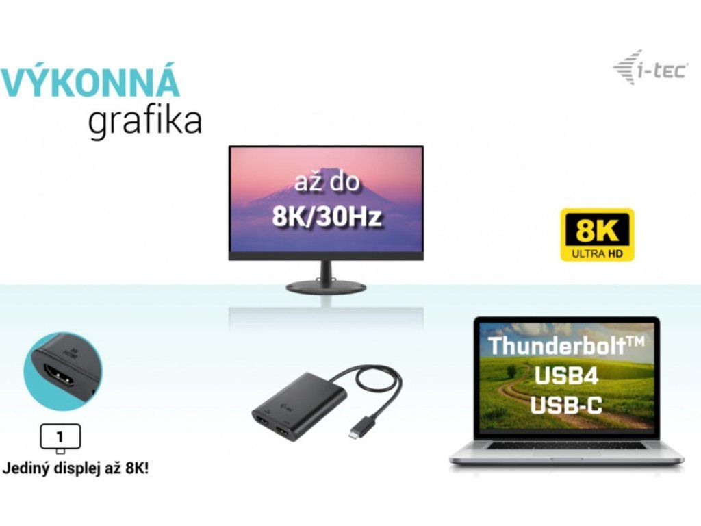 i-tec USB-C Dual 4K/60Hz (single 8K/30Hz) HDMI video adaptér