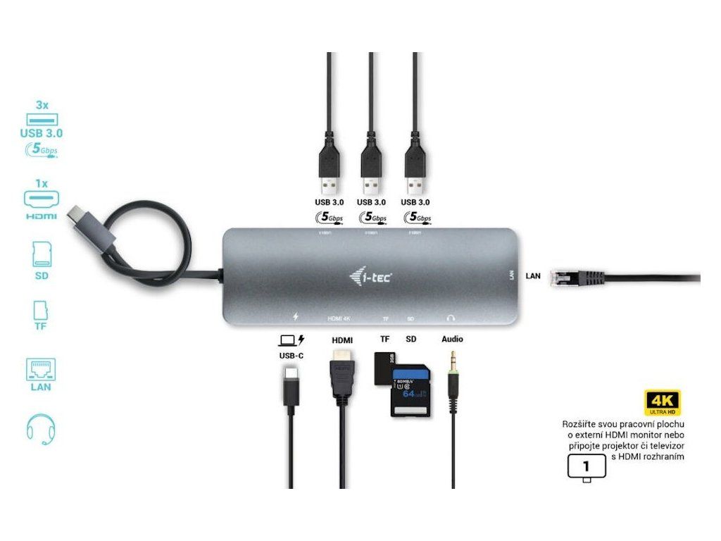 i-tec USB-C Metal Nano Docking Station 4K HDMI LAN, Power Delivery 100 W + Charger 100W (bundle)