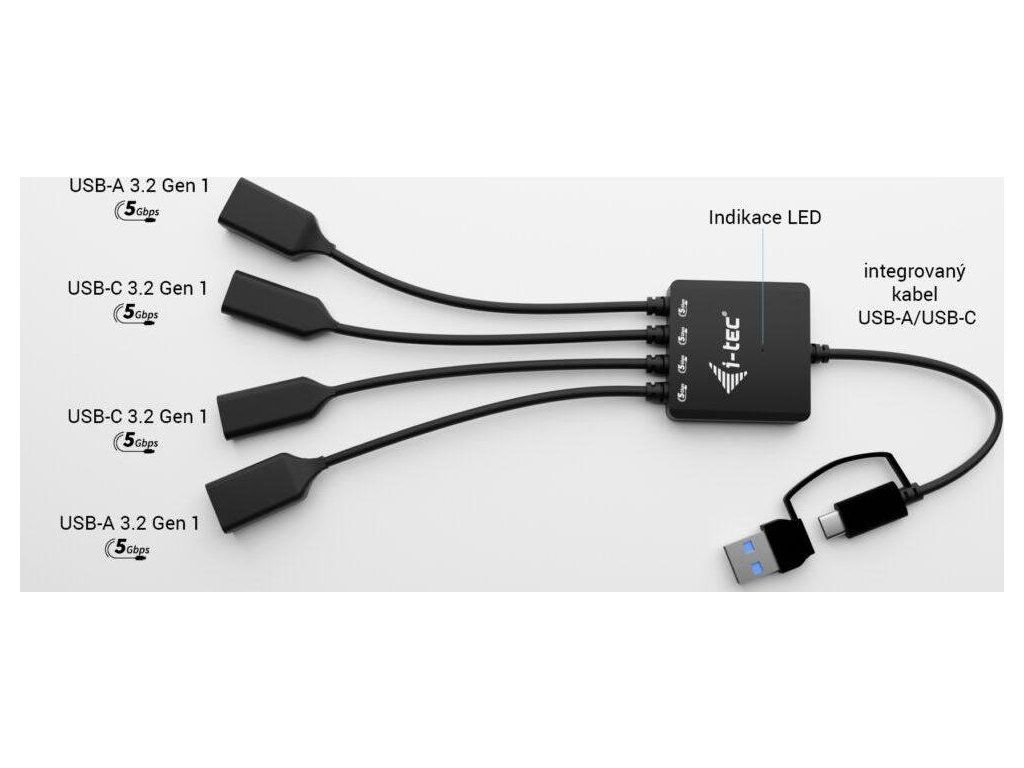 Kabelový Hub I-TEC USB-C/USB-A je navržen pro náročné pracovní prostředí, kam přinese nálož USB portů a rozšíří možnosti konektivity. Hub představuje praktické řešení pro každodenní využití v kanceláři, na cestách, případně v hybridním pracovním režimu. Disponuje čtyři USB porty (2× USB-C a 2× USB), díky čemuž pohodlně připojíte nejrůznější periferie, jako je klávesnice, myš, externí disk apod.