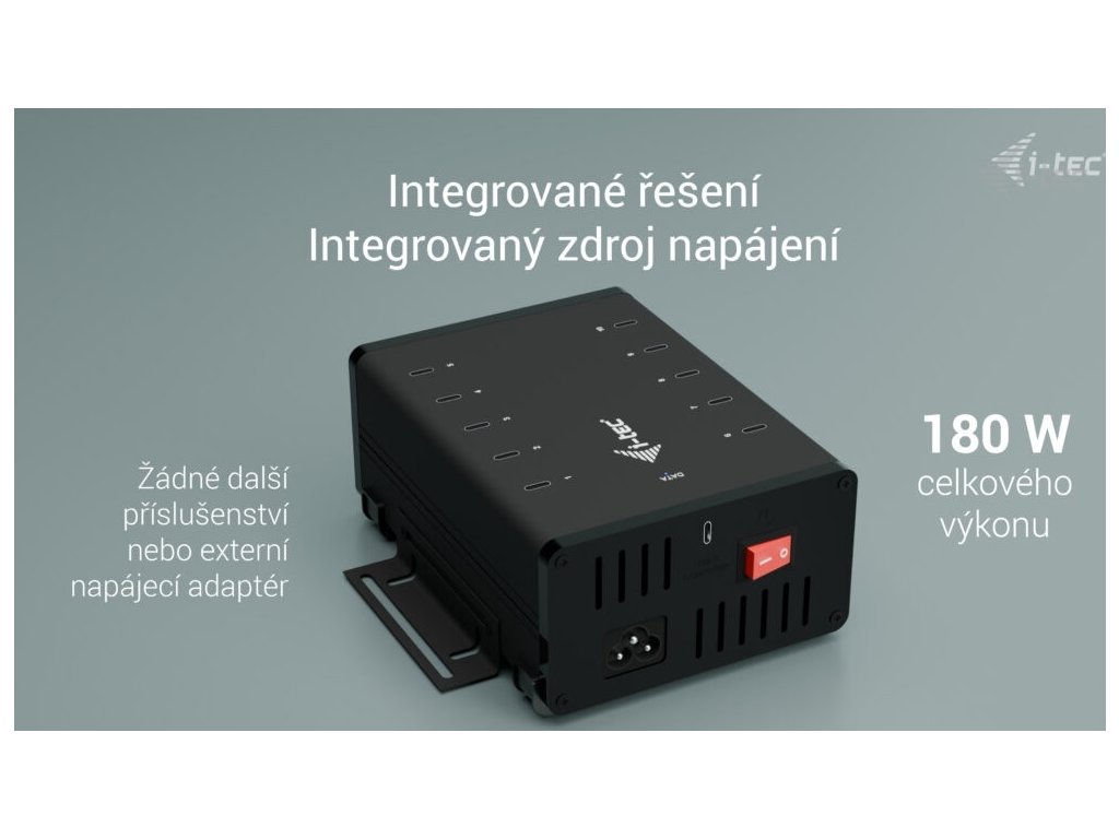 i-tec USB-C/USB-A Metal Charging+Data HUB, 15W per port, 10x USB-C, 180W