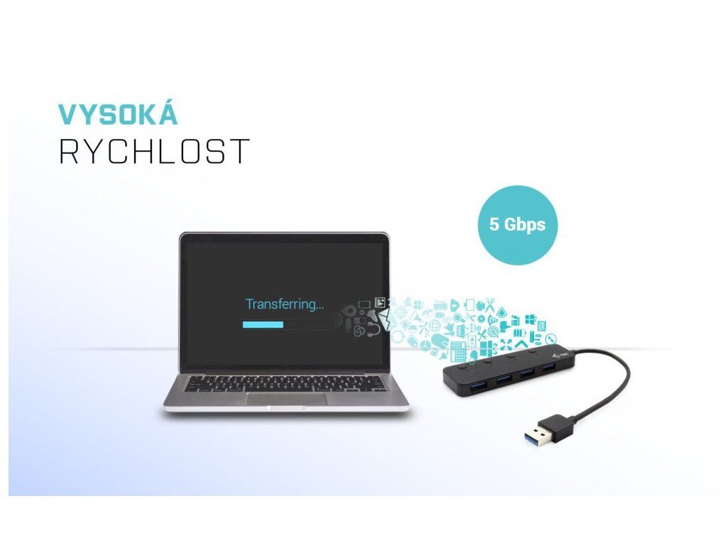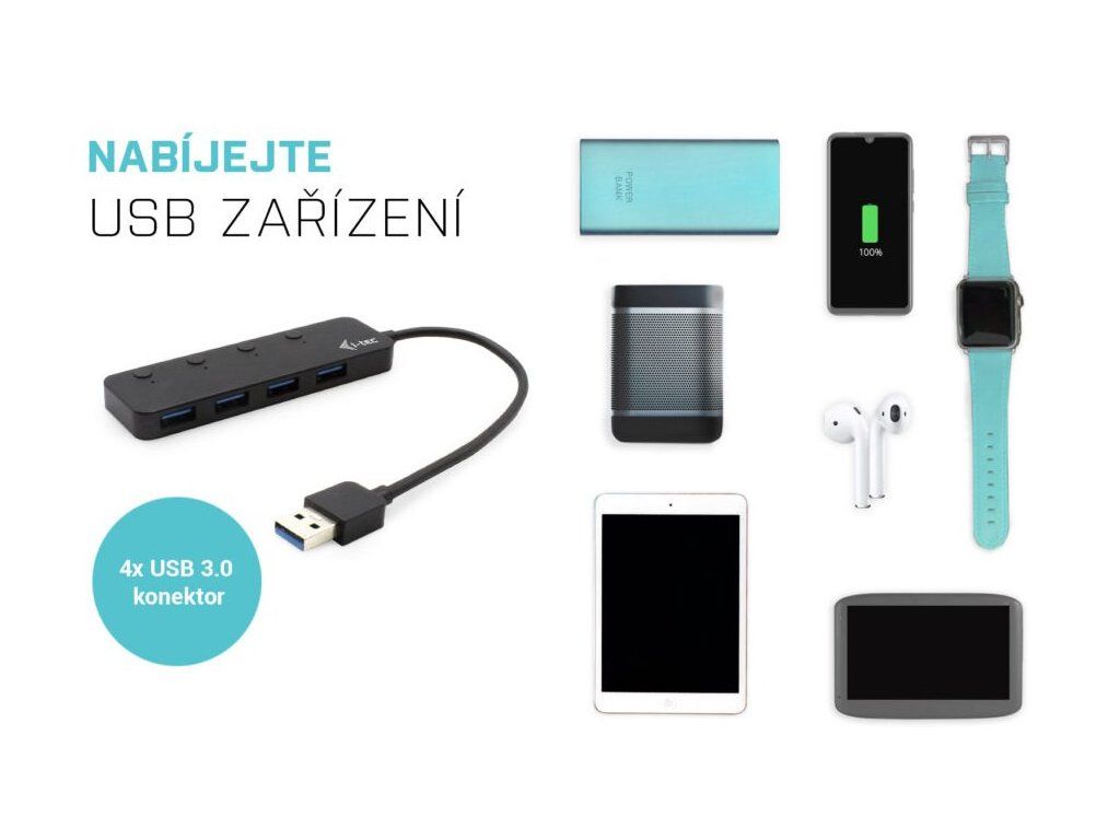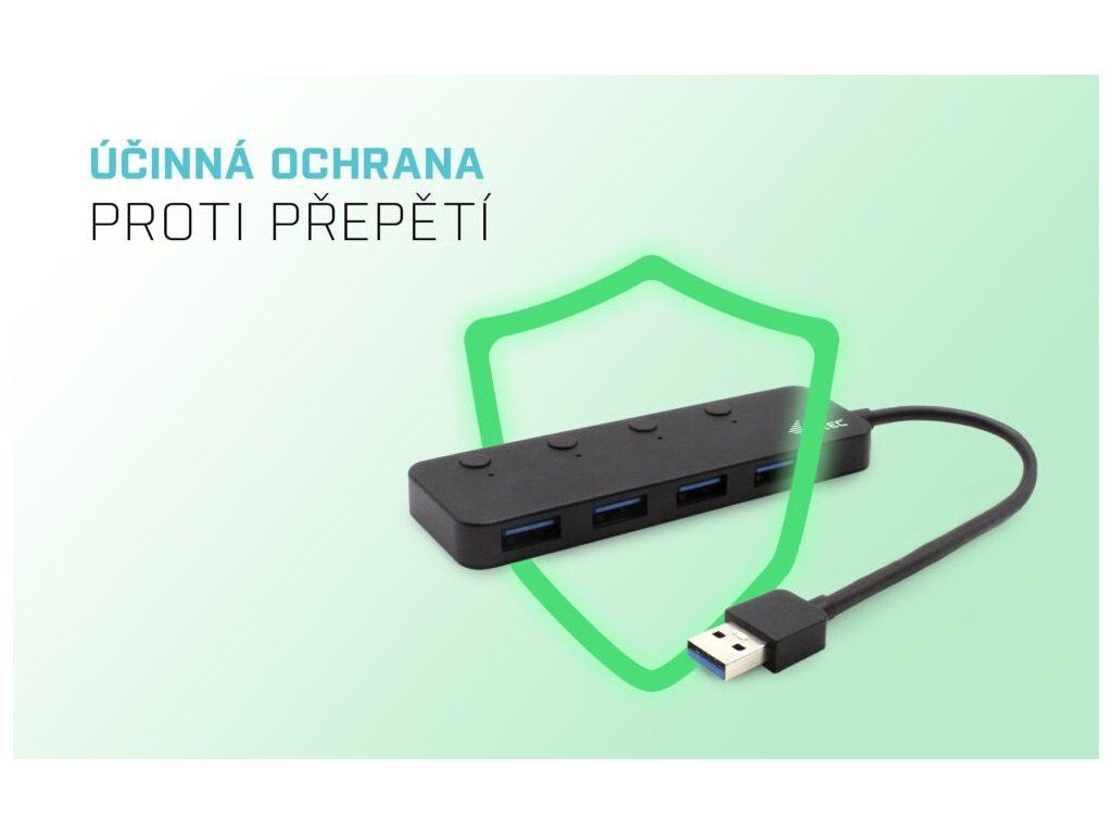 Malý, ale šikovný USB rozbočovač, který se vám bude hodit zejména při nedostatku USB portů ve vašem počítači či notebooku. Jeho hlavní výhodou je možnost jednotlivé USB 3.0 porty zapínat a vypínat, čímž získáte maximální rychlost i nabíjení u aktivních (zapnutých) portů. Rozbočovač můžete také volitelně připojit k napájecímu adaptéru až o výkonu 10 W*, čímž získáte možnost použít například několik HDD či SSD disků zároveň, či si nabít telefon či tablet.