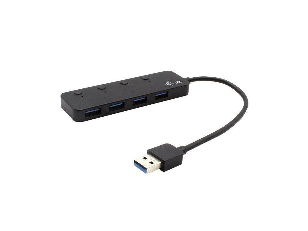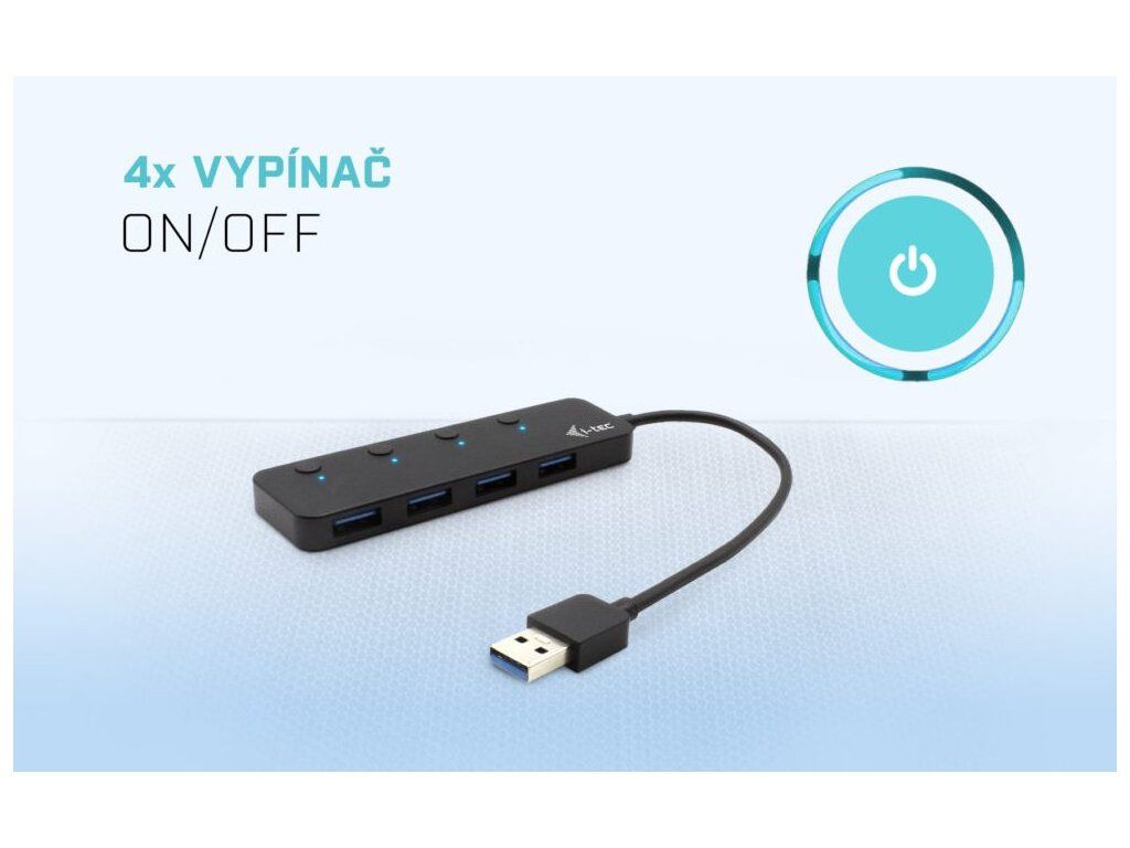 i-tec USB HUB METAL/ 4 porty/ USB 3.0/ tlačítko On/Off pro zapnutí a vypnutí/ kovový/ černý