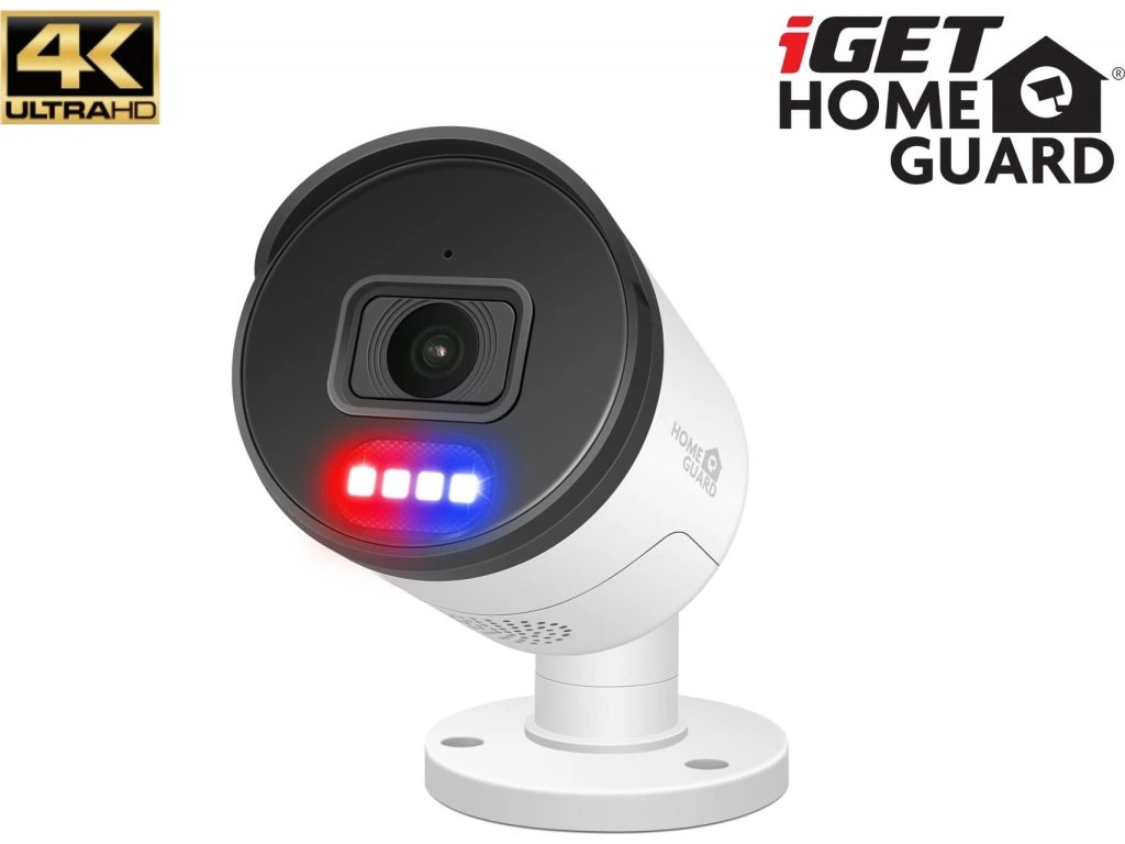 Venkovní odolná Ultra HD 4K (8MPx) kamera iGET HOMEGUARD HGNHK938CAM s obousměrným přenosem zvuku, barevným nočním viděním, sirénou, PoE napájením a SMART AI detekcí pohybu pomocí umělé inteligence, je příslušenství ke kamerovému setu iGET HOMEGUARD HGNVK88504, a také HGNVK84904, HGNVK164908. Rozlišení 4K (3840 x 2160) pro video ve velmi vysoké kvalitě, denní i noční provoz, noční přisvětlení až 40 m, odolnost proti prachu a stříkající vodě IP66. Úhel záběru 110°. LED světla pro výstrahu/svícení a další červeno-modrá LED pro výstrahu. Podpora OnViF (Ver. 2.6, Profile S, Profile G).