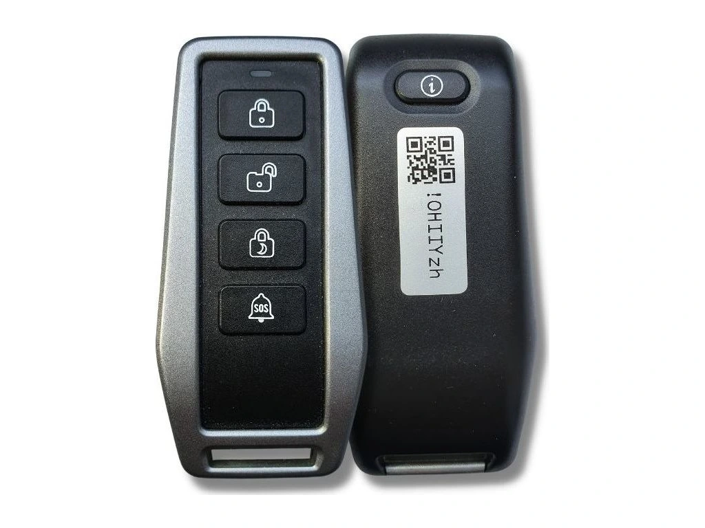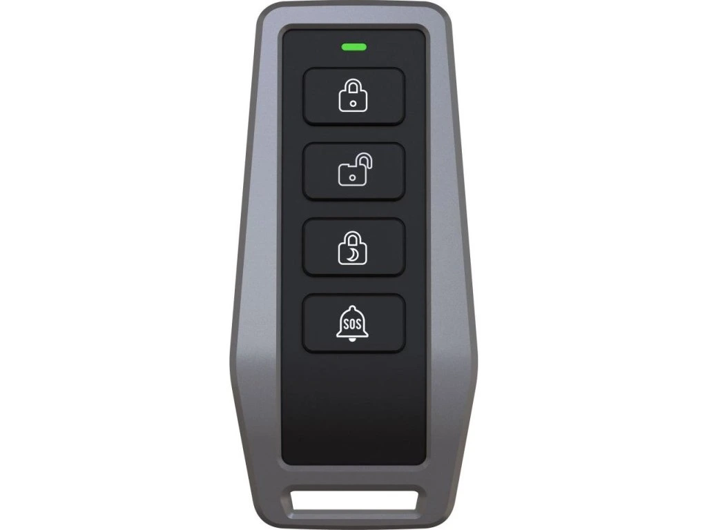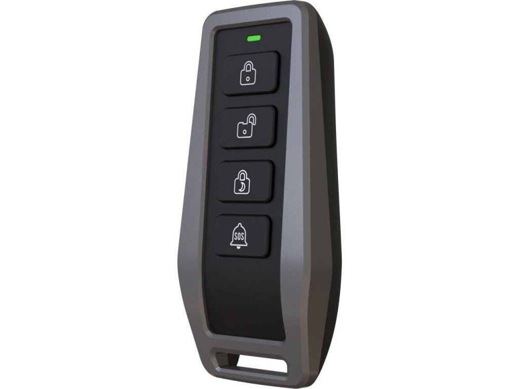 Používá se pro rychlé aktivování a deaktivování alarmu, aktivaci režimu doma, a vyvolání SOS poplachu. Navíc obsahuje na spodní straně volně nastavitelné tlačítko - v aplikaci si uživatel zvolí, co má toto tlačítko provést. Praktický úchyt slouží k upevnění na klíče. Nejvyšší zabezpečení přenosu 256bit. Pro každodenní použití s výdrží baterie až 5 let. Jednoduché připárování k základnímu setu alarmu pomocí QR kódu. Zpracování v moderním designu.