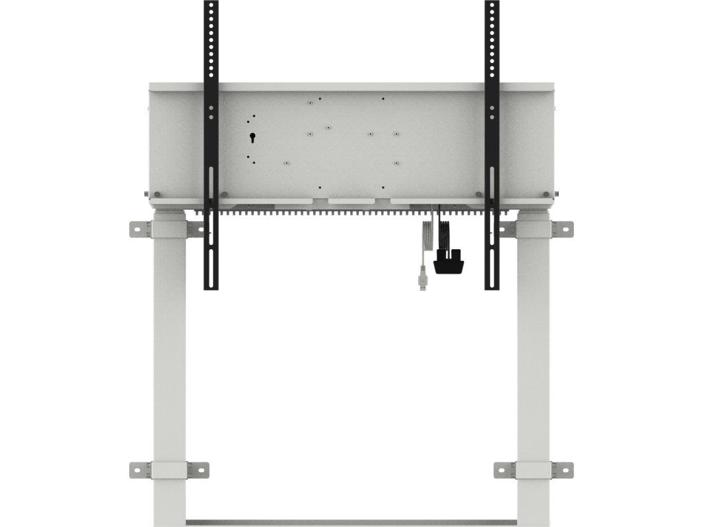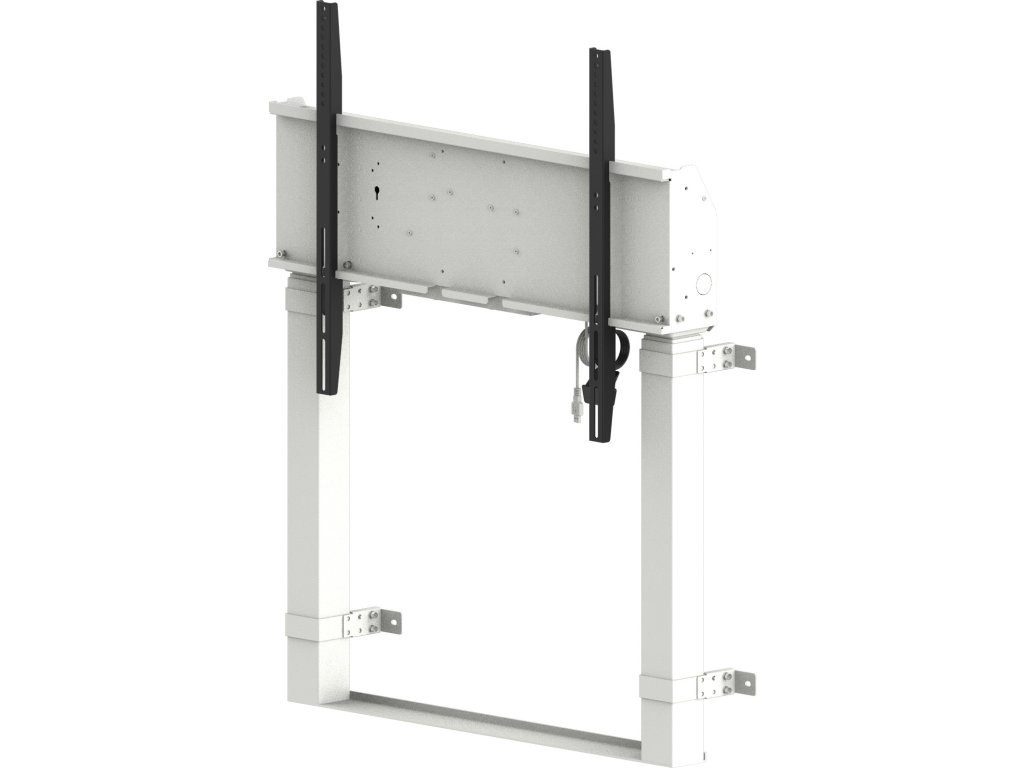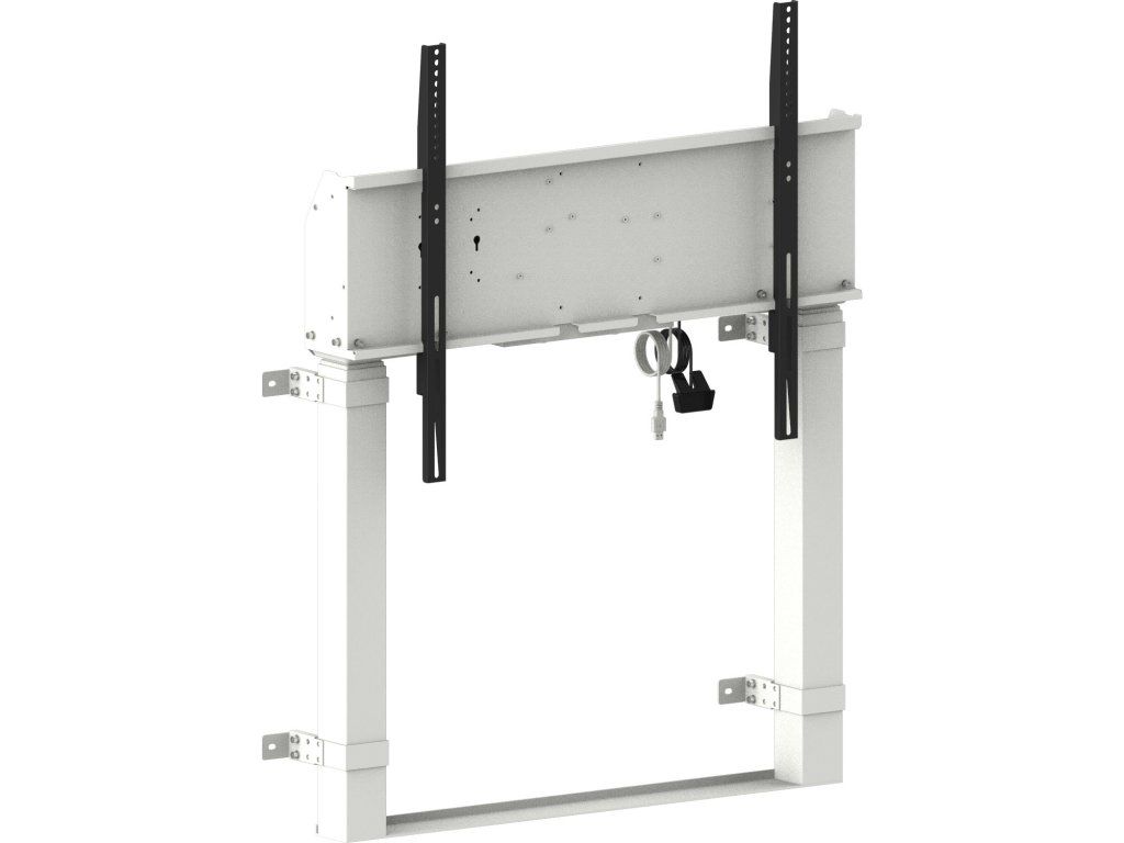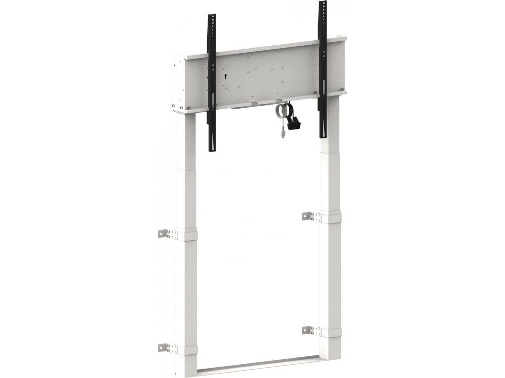 This fixed on-floor and wall single-column electric lift stand is a perfect solution for 55"-98" displays. It’s suitable with screens up to VESA 800x600mm and up to 120kg. Equipped with an easy mount, based on “pull and release” brackets and a wired remote, it is a perfect solution for displays placed in classrooms or conference rooms.