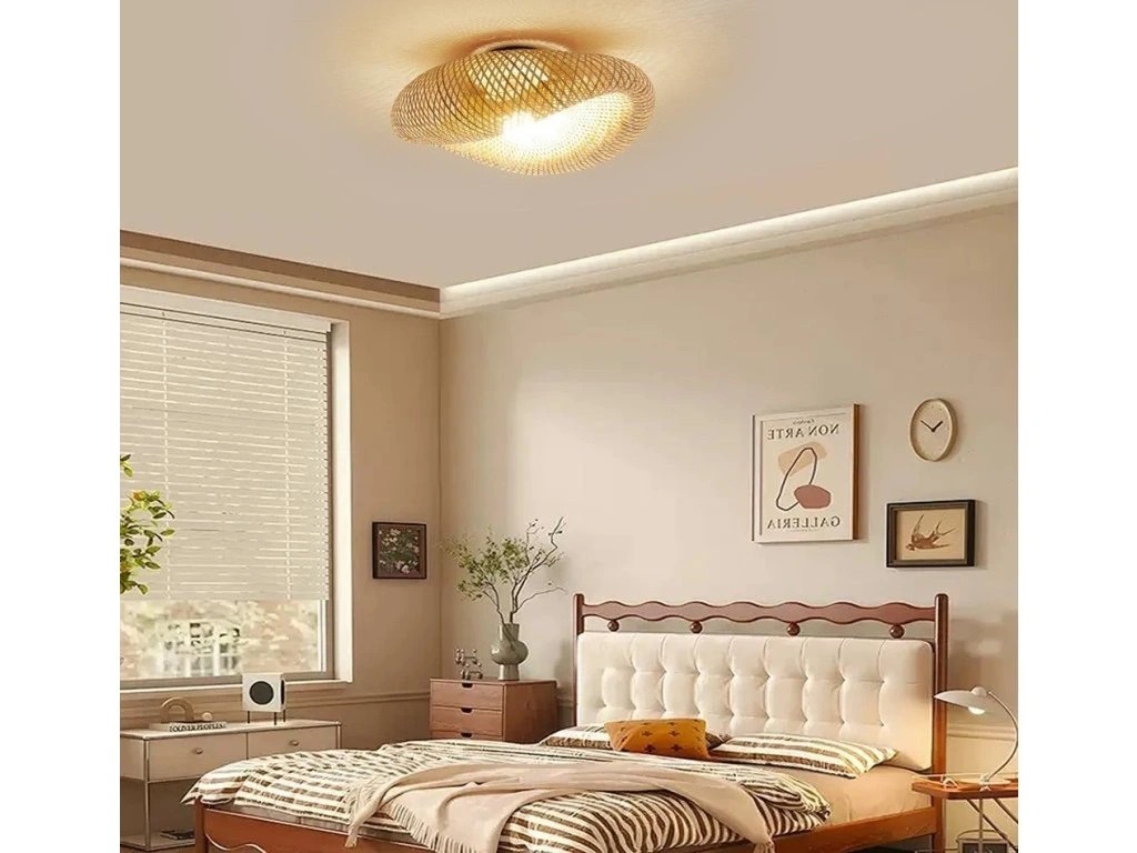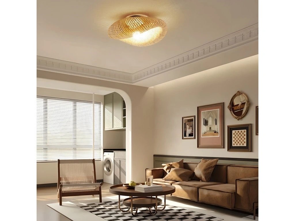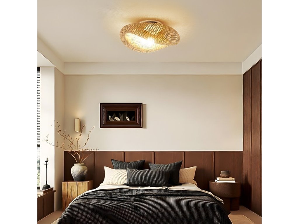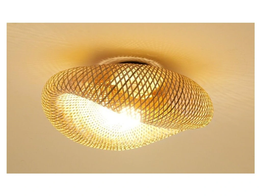 Přisazené stropní svítidlo z ručně proplétaného bambusového vlákna v přírodním BOHO stylu.
