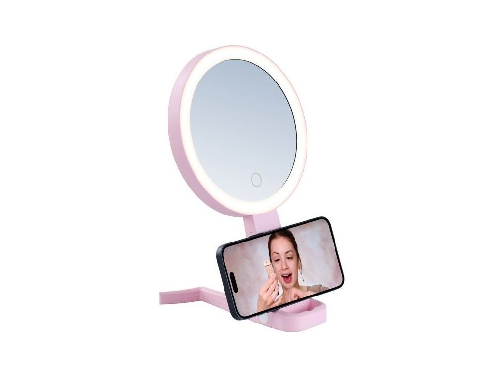 IMMAX LED kosmetické zrcátko SWEET Make up/ oboustranné/ 10x zvětšovací/ CCT/ stojánek na mobil/ růžové