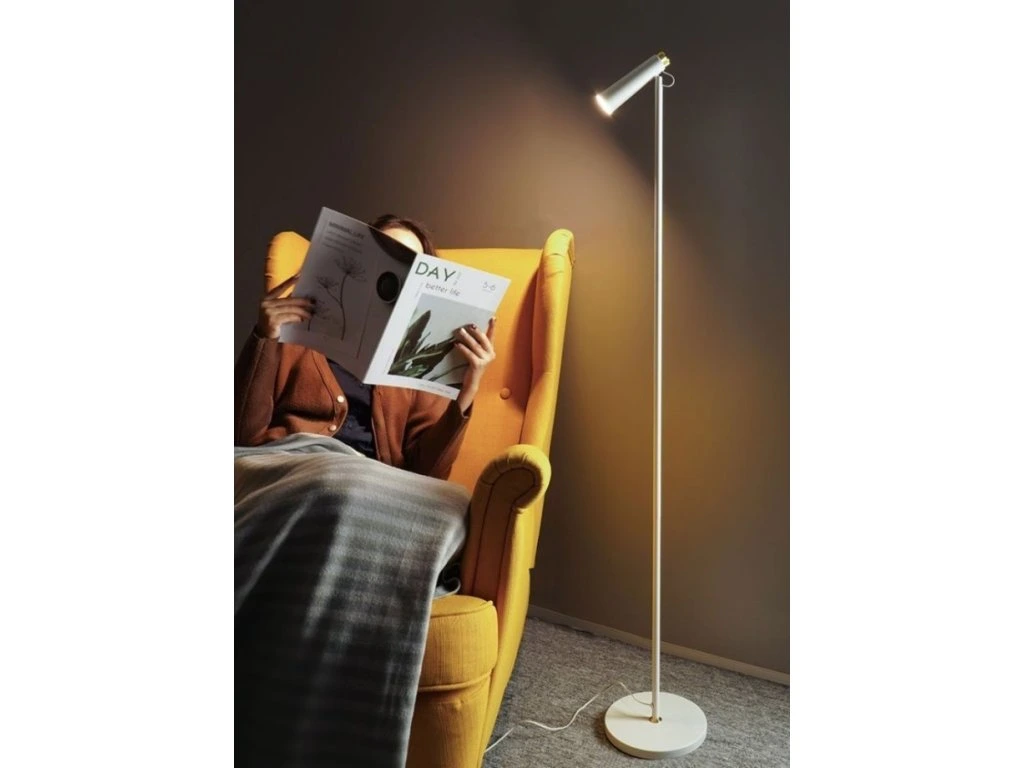 Elegantní kovová LED podlahová lampa s nastavitelnou teplotou světla a otočným ovládáním úrovně jasu. Nabízí možnost volby mezi teplým, studeným a přirozeným světlem, což umožňuje přizpůsobit osvětlení aktuálním potřebám. Moderní design dělá z lampy ideální doplněk do obývacích pokojů.