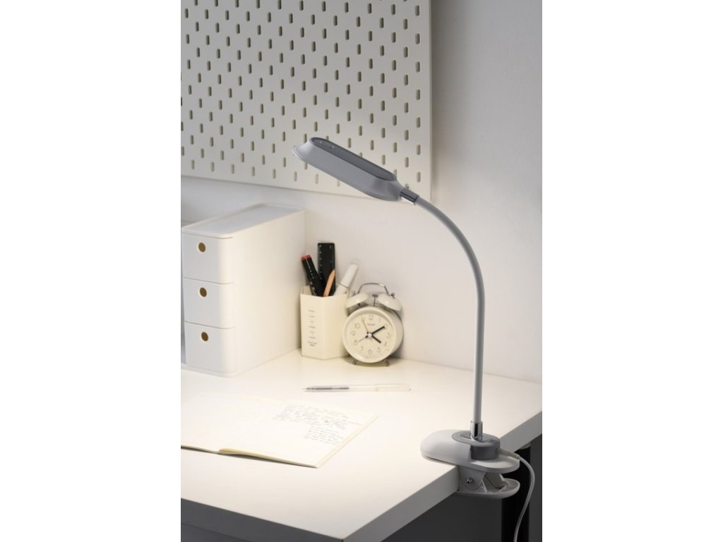 Kompaktní stolní lampička s vysokým výkonem svícení 7,5 W a světelným tokem až 800 lm. Díky pevnému klipu ji jednoduše upevníte na desku stolu, polici nebo rám postele. Ohybné rameno umožňuje správné nasměrování světla přesně tam, kde ho potřebujete.