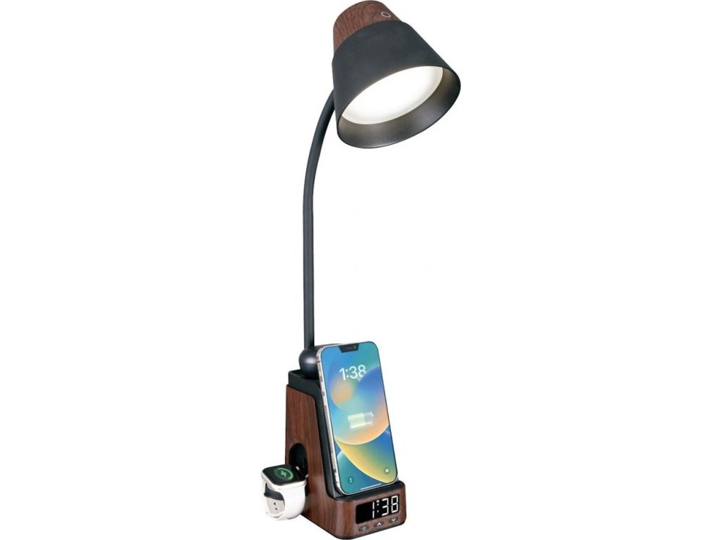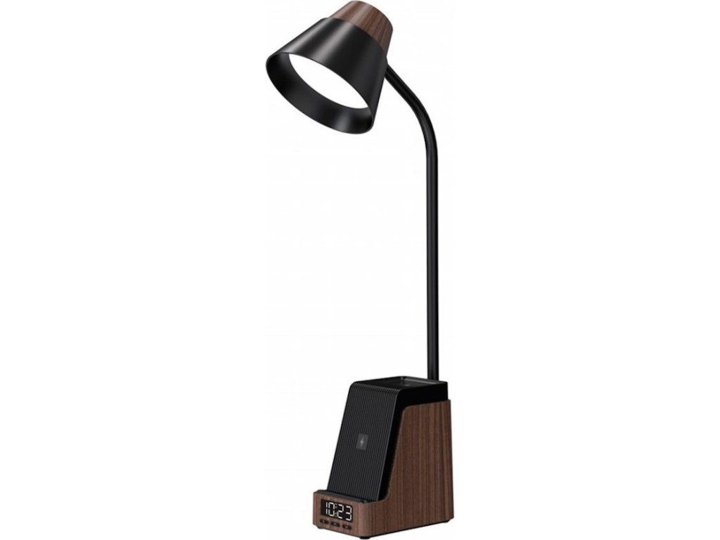 Moderní stolní lampa kombinuje kvalitní osvětlení s praktickou nabíjecí funkcí pro telefony, sluchátka a chytré hodinky. Elegantní design v dekoru tmavého dřeva s černými prvky dokonale doplní moderní pracovnu, ložnici nebo dětský pokoj.