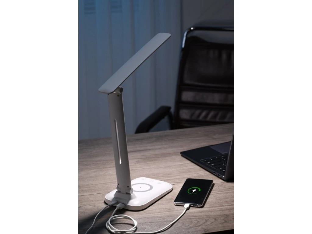 IMMAX LED stolní lampička LUMI/ Qi nabíjení/ 7W/ 300lm/ 12V/2A/ stmívatelná/ bílá