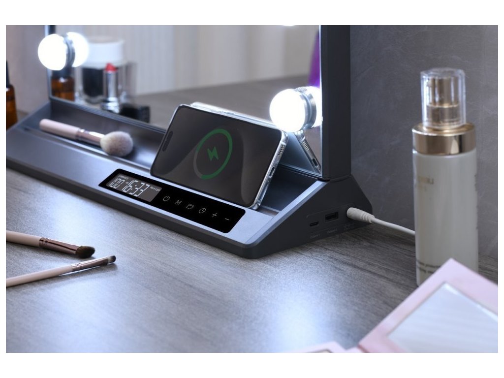 Integrované USB a USB-C porty s maximálním výkonem 20 W na port umožňují nabíjení mobilních telefonů, tabletů a dalších zařízení přímo u zrcadla. Oba porty podporují rychlé nabíjení při použití pouze jednoho portu.