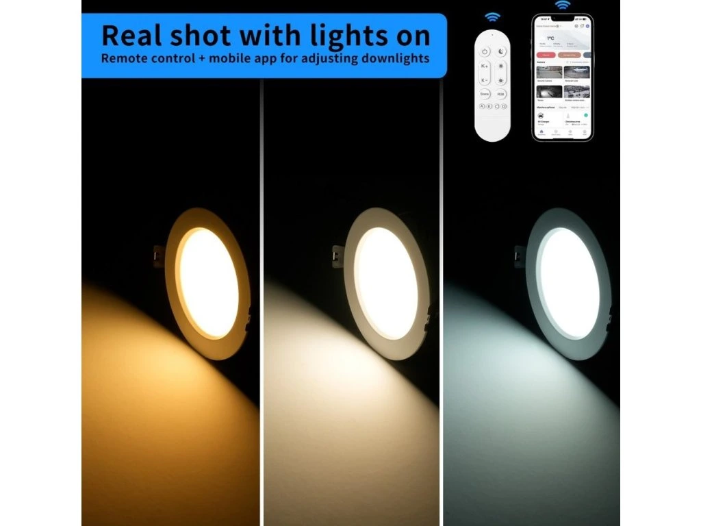 Moderní inteligentní podhledové svítidlo s Wi-Fi připojením a pokročilými funkcemi pro chytrou domácnost.