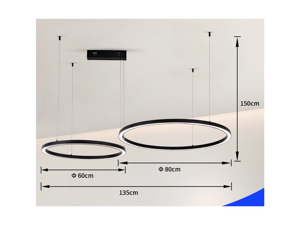 IMMAX NEO FINO NEW SMART závěsné svítidlo 2 kruhy, 60+80cm, 93W, černé, Zigbee 3.0, TUYA
