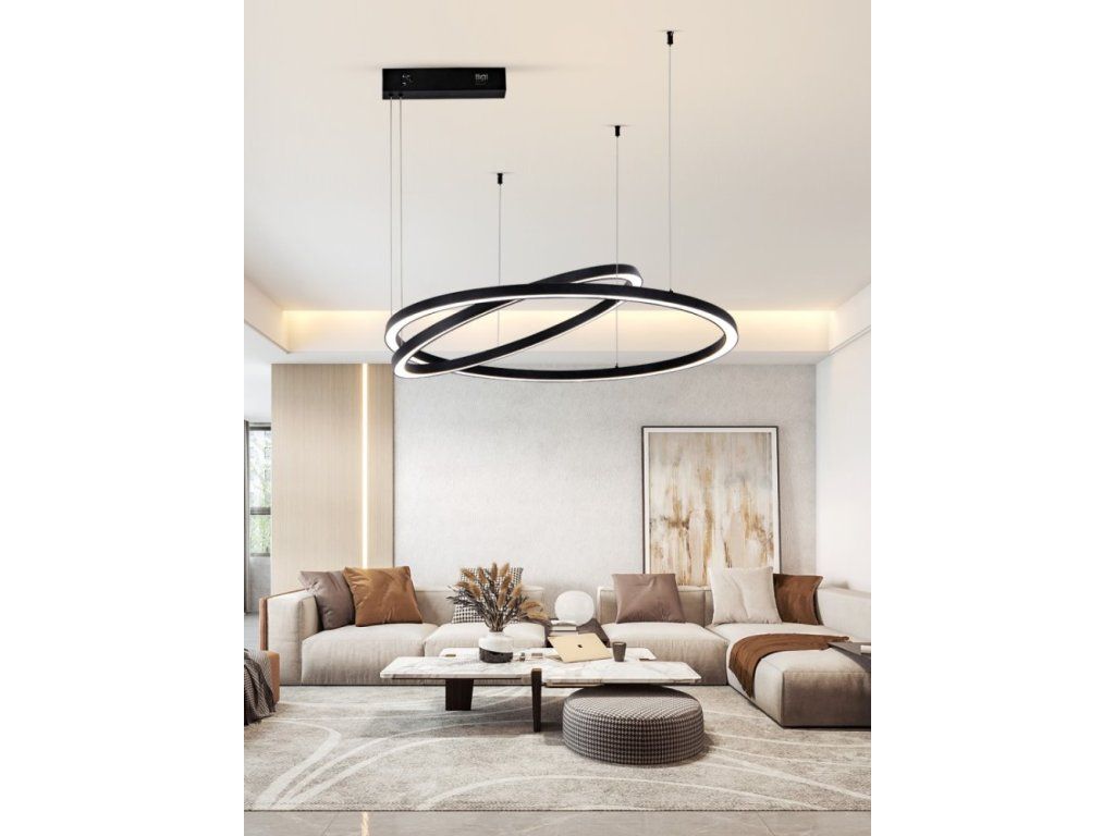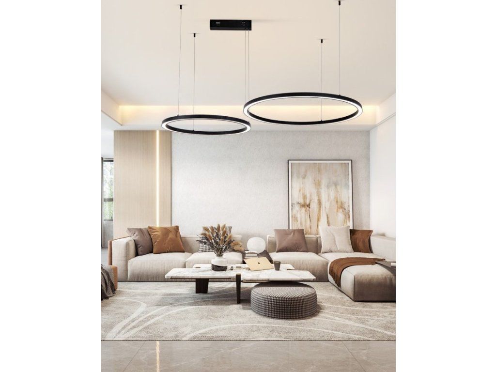 Dvě závěsná LED svítidla v moderním kruhovém provedení tvoří ideální centrální osvětlení například do obývacího pokoje. Závěsný systém umožňuje maximální variabilitu zavěšení, včetně umístění vedle sebe pro dosažení šířky lustru až 135 cm. Navíc svítí směrem dolů, díky čemu nedochází k nežádoucímu oslnění. Svítidla lze propojit s chytrou bránou IMMAX NEO a ovládat tak celou síť domácích světelných zdrojů skrze dálkový ovladač či aplikaci v mobilním telefonu. Dálkový ovladač Zigbee 3.0 je součástí balení. Systém je kompatibilní s iOS, Android, Amazon Alexa, Apple Siri, Google Assistant, Tuya, Philips HUE či Somfy.
