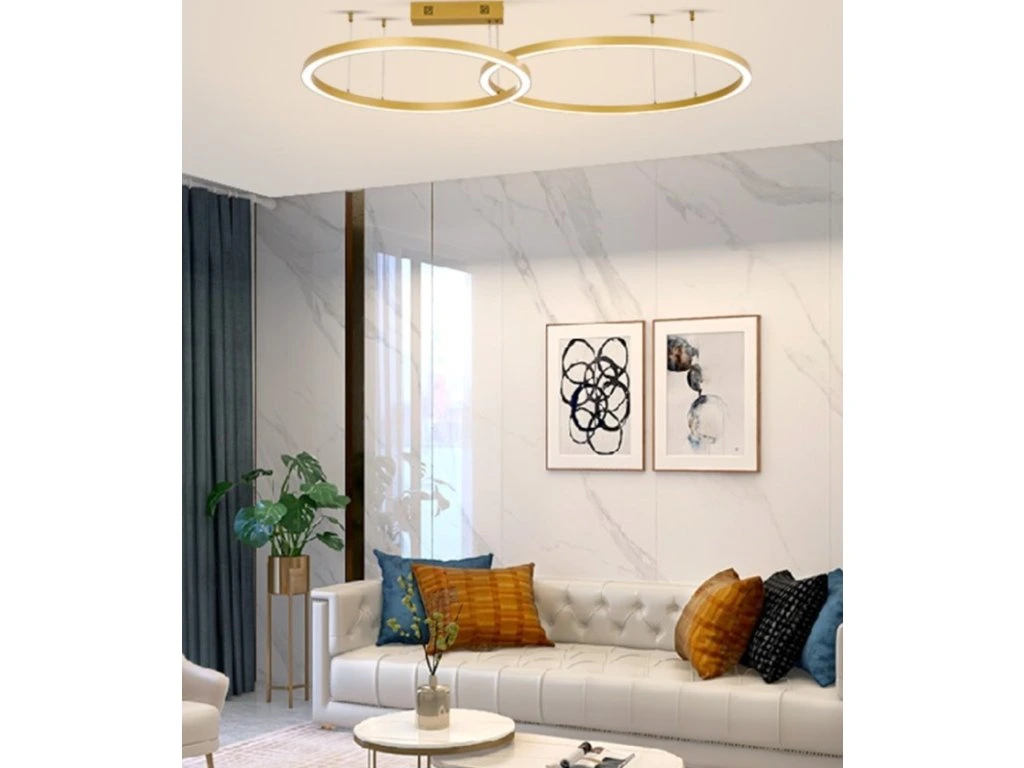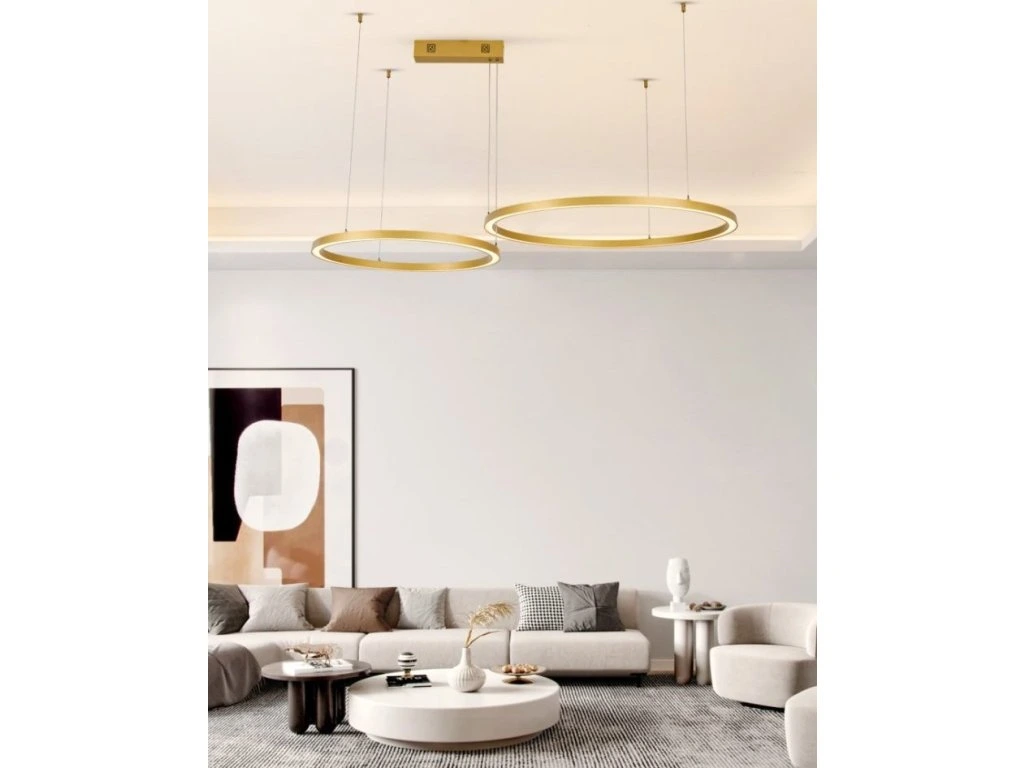 IMMAX NEO FINO NEW SMART závěsné svítidlo 2 kruhy, 60+80cm, 93W zlaté, Zigbee 3.0, TUYA