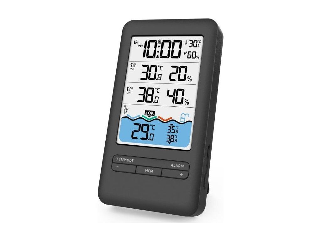 - Senzory pro měření teploty a vlhkosti vzduchu v bazénu i interiéru, budík nebo zobrazení data a času rozšiřují jejich využití.