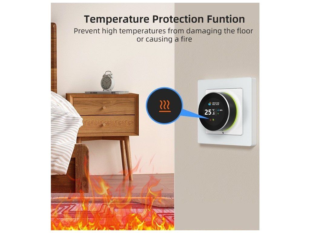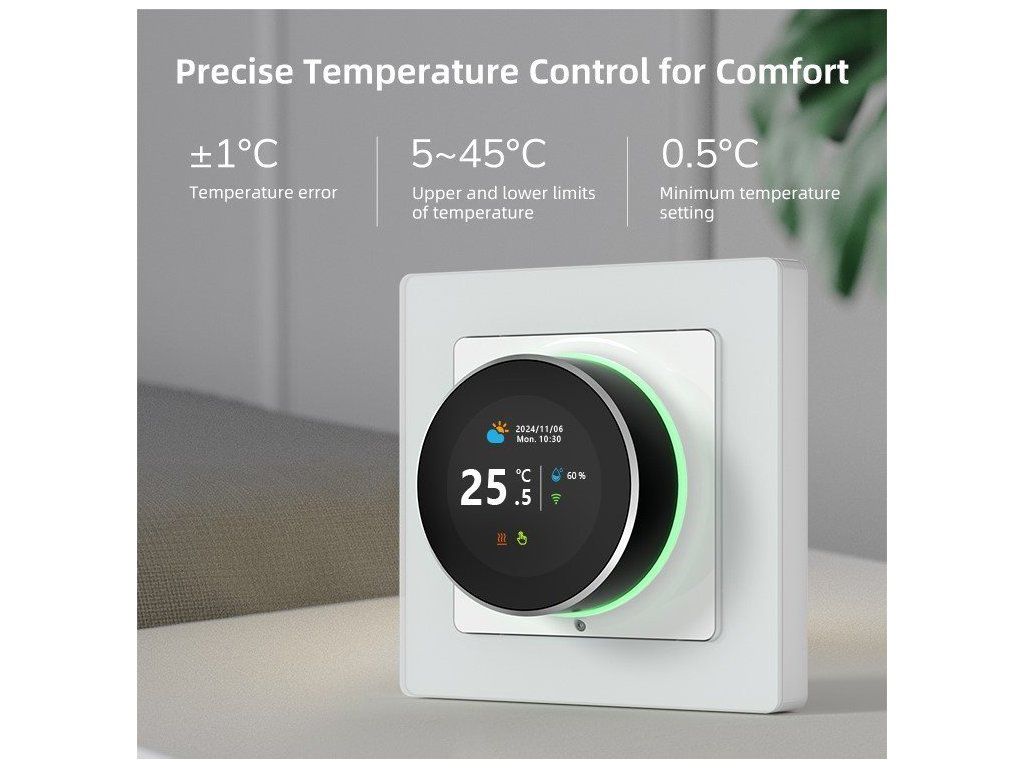 Inteligentní Wi-Fi termostat pro efektivní řízení elektrického podlahového vytápění s podporou hlasového ovládání a mobilní aplikace.