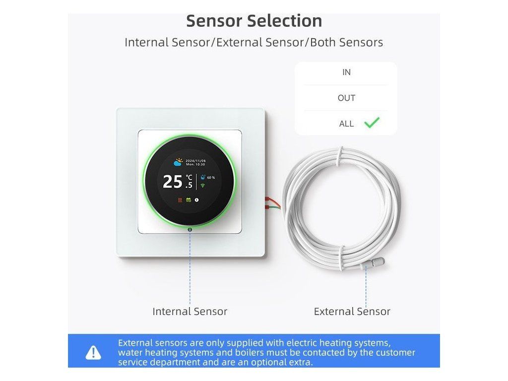 Obsah balení: termostat, externí teplotní čidlo (3 m), uživatelský manuál